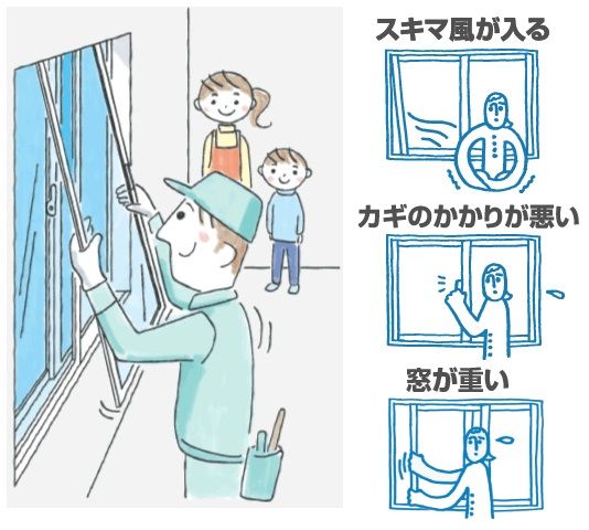 》来店不要、現場確認、見積りは無料《 窓(サッシ)の修理、窓(断熱サッシ)の交換は、富山県内全域に対応します。富山県西部:高岡市、射水市、氷見市、小矢部市、砺波市、南砺市富山県東部:富山市、滑川市、中新川郡、魚津市、黒部市、下新川郡 いい製品を、どこよりも安く! 「窓ガラスが割れた」、「エコ内窓のカギ(クレセント錠)が壊れた」、「防犯ガラスに交換したい」、「高性能トリプルガラス樹脂窓に興味がある」など、窓(サッシ)の修理から、ニーズに対応した窓のリフォーム工事まで、窓まわりのことなら何でもお任せください。窓の専門店です。 "Smart&Eco"な生活スタイル みなさんの住まいでは、冷暖房機器のパワーをいくら上げてもなかなか効果を感じない、ということはありませんか?一般的な住まいでは、外壁や屋根のほか、窓や扉などの開口部からも意外に多くの熱が出入りしています。住まいの断熱は、人が環境と共生しながら快適に暮らしていくうえで、とても大きなメリットがあります。 これからの断熱キーワード? 「窓」 平成4年省エネ基準で建てた住宅モデルにおける例では、夏は外からの熱の侵入は、約 7 割が窓から、また、冬になると暖房熱の約 5 割が窓から流出します。窓からの熱の侵入・流出を効果的に防ぐことで経済的で快適な暮らしをささえます。 もっと快適に、もっと省エネに。リフォームのスタートは、 「窓」 です。いちばん効きやすいところから手を入れる。それがかしこいリフォームのコツ。そのカギをにぎっているのは、何といっても、窓。手軽にはじめて、効果が出やすい窓のリフォームがおすすめです。YKK APは窓のリフォームを通じ、住宅の省エネ化を積極的に推進しています。 》施工実績・トップクラス・創業42周年《 【工事の流れ】1.事前の打合せ。窓まわりの大きさや窓(サッシ)の種類を確認。2.工事開始。古い窓(サッシ)を撤去して、新しい断熱サッシを設置。3.シーリング・建付調整・チェックを行い工事完了。 【工事時間】 約3時間。 現場確認、見積りは無料!まずはお電話ください! 24時間受付 0120-375-345アルミ建材和田 〒933-0062 富山県高岡市江尻856-2 価格保証 かならず他店より安くします!ぜひ、ご相談ください! (社)日本サッシ協会加盟店(社)カーテンウォール・防火開口部協会加盟店 ◇スタッフは、(社)富山県建築組合連合会に加盟した高岡市の建築組合員です。富山県建築組合連合会では、市や町のご協力のもと県内13箇所で、『無料の住宅相談所』を開設しています。富山県の気候風土に適した丈夫で快適な新築や増改築はもちろん、耐震補強工事や住宅診断まで、住まいのことなら何でも、お気軽にご相談ください。 【富山県西部:営業エリア】高岡市、射水市、氷見市、小矢部市、砺波市、南砺市【富山県東部:営業エリア】富山市、滑川市、中新川郡、魚津市、黒部市、下新川郡 【所在地】富山県高岡市江尻856-2 Tel 0120-375-345 【取扱メーカー】三協アルミ、YKK AP、リクシル、旭硝子、日本板硝子、美和ロック、住友3M 来店不要!(電話で、24時間受付中!)