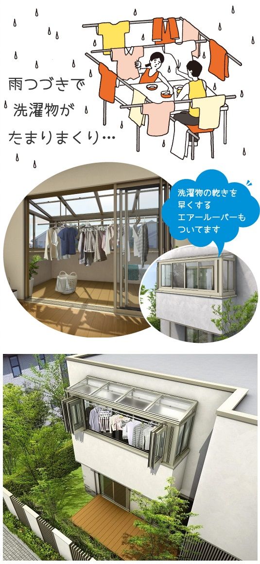 》来店不要、現場確認、見積りは無料《 ガーデンルームの修理、ガーデンルームの新設工事は、富山県内全域に対応します。富山県西部:高岡市、射水市、氷見市、小矢部市、砺波市、南砺市富山県西部:富山市、滑川市、中新川郡、魚津市、黒部市、下新川郡 いい製品を、どこよりも安く! 「ガーデンルームの屋根が豪雪で壊れた」、「ガーデンルームのガラスが割れた」、「雨の日でも安心して使える洗濯物干し場として、ガーデンルームがほしい」など、ガーデンルームの修理から、リフォームニーズに対応したガーデンルームの新設工事まで、テラスまわりのことなら何でもお任せください。エクステリア工事の専門店です。 YKK AP 正面デザインパネル付き屋根 アウタールーフ ガーデンルームタイプ窓辺が広がる、暮らしが広がる。『アウタールーフ』は、テラス戸や勝手口に取付けることでウチからソトへ、生活の幅を広げる新発想の商品です。 雨の日の物干し場に洗濯機からすぐに行けるので移動がラクラク。雨の日でも手軽に物干しができます。面倒なバルコニーへの移動や、リビングを占拠する室内干しのお悩みを解決します。キッチンの収納スペースにすぐに増えてしまう生ゴミや新聞紙、ビール缶、ペットボトルなど・・・・・キッチンに溜ってしまいがちなゴミも、スッキリ片付きます。イヤな臭いの問題も解決します。セルフクリーニング効果正面デザインパネルは強化ガラスです。強化ガラスはセルフクリーニング機能〈光触媒コート〉を標準装備した強化ガラスです。イージーメンテナンスでガラスの美しさを保ちます。 》施工実績・トップクラス・創業41周年《 【工事の流れ】1.事前の打合せ。ガーデンルームの大きさや種類を確認。2.工事開始。ガーデンルームを設置。3.シーリング・建付調整・チェックを行い工事完了。 【工事期間】 約1日。 現場確認、見積りは無料!まずはお電話ください! 24時間受付 0120-375-345アルミ建材和田 〒933-0062 富山県高岡市江尻856-2 価格保証 かならず他店より安くします!ぜひ、ご相談ください! (社)日本サッシ協会加盟店(社)カーテンウォール・防火開口部協会加盟店 ◇スタッフは、(社)富山県建築組合連合会に加盟した高岡市の建築組合員です。富山県建築組合連合会では、市や町のご協力のもと県内13箇所で、『無料の住宅相談所』を開設しています。富山県の気候風土に適した丈夫で快適な新築や増改築はもちろん、住宅診断や耐震補強工事まで、住まいのことなら何でも、お気軽にご相談ください。 【富山県西部:営業エリア】高岡市、射水市、氷見市、小矢部市、砺波市、南砺市【富山県東部:営業エリア】富山市、滑川市、中新川郡、魚津市、黒部市、下新川郡 【所在地】富山県高岡市江尻856-2 Tel 0120-375-345 【取扱メーカー】三協アルミ、YKK AP、リクシル、旭硝子、日本板硝子、美和ロック、住友3M 来店不要!(電話で、24時間受付中!)