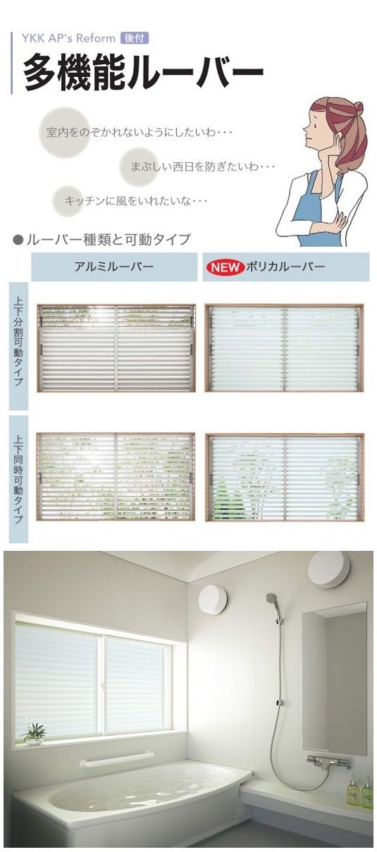 》来店不要、現場確認、見積りは無料《 多機能ルーバーの修理、多機能ルーバーの設置は、富山県内全域に対応します。富山県東部:富山市、滑川市、中新川郡、魚津市、黒部市、下新川郡富山県西部:高岡市、射水市、氷見市、小矢部市、砺波市、南砺市 いい製品を、どこよりも安く! 「多機能ルーバーの羽板が壊れた」、「室内をのぞかれないようにしたい」、「まぶしい西日を防ぎたい」など、多機能ルーバーの修理から、ニーズに対応した窓まわりのリフォーム工事まで、窓まわりのことなら何でもお任せください。窓の専門店です。 YKK AP 多機能ルーバー"目隠し"、"採光"、"通風(換気)"、"日除け(遮熱)"の4つの機能をひとつにまとめ、光と風とプライバシーを自由自在にコントロールします。さまざまな場所で、目的に合せて利用できます。無段階で動くルーバーの角度により、通風性や採光性、プライバシーの確保などをコントロールし、取付けた空間の快適性を向上します。羽根の角度調整は簡易なダイヤル操作ダイヤル操作なので、お子さまから年配の方まで指一本で容易に操作が可能。ルーバー角度はダイヤルを回転させることにより操作ができ、止めたい角度でロックして固定させます。 》施工実績・トップクラス・創業41周年《 【工事の流れ】1.事前の打合せ。窓まわりの大きさや多機能ルーバーの種類を確認。2.工事開始。今ある窓の外側に、多機能ルーバーを設置。3.シーリング・調整・チェックを行い工事完了。 【工事時間】 約1時間。 現場確認、見積りは無料!まずは、お電話ください! 24時間受付 0120-375-345アルミ建材和田 〒933-0062 富山県高岡市江尻856-2 価格保証 かならず他店より安くします!ぜひ、ご相談ください! (社)日本サッシ協会加盟店(社)カーテンウォール・防火開口部協会加盟店 ◇スタッフは、(社)富山県建築組合連合会に加盟した高岡市の建築組合員です。富山県建築組合連合会では、市や町のご協力のもと県内13箇所で、『無料の住宅相談所』を開設しています。富山県の気候風土に適した丈夫で快適な新築や増改築はもちろん、耐震補強工事や住宅診断まで、住まいのことなら何でも、お気軽にご相談ください。 【富山県西部:営業エリア】高岡市、射水市、氷見市、小矢部市、砺波市、南砺市【富山県東部:営業エリア】富山市、滑川市、中新川郡、魚津市、黒部市、下新川郡 【所在地】富山県高岡市江尻856-2 Tel 0120-375-345 【取扱メーカー】三協アルミ、YKKA P、リクシル、旭硝子、日本板硝子、美和ロック、住友3M 来店不要!(電話で、24時間受付中!)
