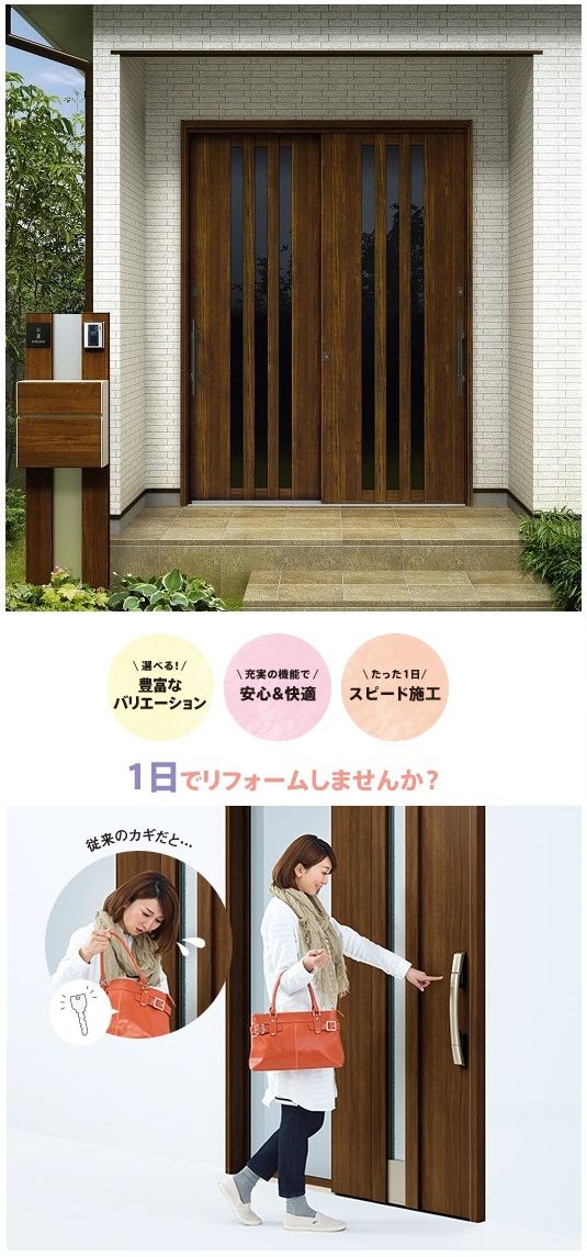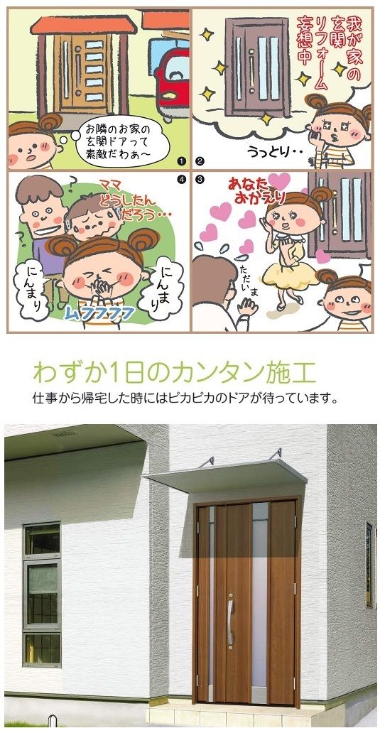 》来店不要、現場確認、見積りは無料《 玄関ドアの修理、玄関ドアの交換は、富山県内全域に対応します。富山県西部:高岡市、射水市、氷見市、小矢部市、砺波市、南砺市富山県東部:富山市、滑川市、中新川郡、魚津市、黒部市、下新川郡 いい製品を、どこよりも安く! 「玄関ドアが重くなった、開きにくい」、「玄関ドアのカギが壊れた」、「もっと明るく暖かい玄関にリフォームしたい」、「玄関ドアの防犯面をよくしたい」、「1日で、最新のスマート ドアに交換したい」など、玄関ドアの修理から、リフォームニーズに対応した玄関ドアの交換工事まで、玄関まわりのことなら何でもお任せください。 三協アルミ 玄関ドア ラフォースシリーズ豊富なカラーと個性的な飾り鋳物、欧風デザインの魅力溢れる"ナチュレ"エントランスからはじまる私らしい暮らし。それは、女性目線から生まれた感性のカタチ。女性の感性を生かした玄関ドアシリーズ。 》施工実績・トップクラス・創業42周年《 【工事の流れ】1.事前の打合せ。玄関まわりの大きさや玄関ドアの種類を確認。2.工事開始。古い玄関ドアを撤去し、新しい断熱玄関ドアを設置。3.シーリング・建付調整・チェックを行い工事完了。 【工事期間】 約1日。 現場確認、見積りは無料!まずはお電話ください! 24時間受付 0120-375-345アルミ建材和田 〒933-0062 富山県高岡市江尻856-2 価格保証 かならず他店より安くします!ぜひ、ご相談ください! (社)日本サッシ協会加盟店(社)カーテンウォール・防火開口部協会加盟店 ◇スタッフは、(社)富山県建築組合連合会に加盟した高岡市の建築組合員です。富山県建築組合連合会では、市や町のご協力のもと県内13箇所で、『無料の住宅相談所』を開設しています。富山県の気候風土に適した丈夫で快適な新築や増改築はもちろん、耐震補強工事や住宅診断まで、住まいのことなら何でも、お気軽にご相談ください。 【富山県西部:営業エリア】高岡市、射水市、氷見市、小矢部市、砺波市、南砺市【富山県東部:営業エリア】富山市、滑川市、中新川郡、魚津市、黒部市、下新川郡 【所在地】富山県高岡市江尻856-2 Tel 0120-375-345 【取扱メーカー】三協アルミ、YKK AP、リクシル、旭硝子、日本板硝子、美和ロック、住友3M 来店不要!(電話で、24時間受付中!)
