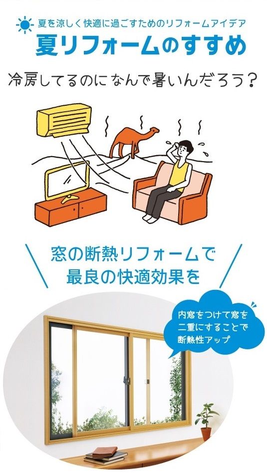 》来店不要、現場確認、見積りは無料《 エコ内窓の修理、エコ内窓の後付けは、富山県内全域に対応します。 富山県西部:高岡市、射水市、氷見市、小矢部市、砺波市、南砺市 富山県東部:富山市、滑川市、中新川郡、魚津市、黒部市、下新川郡 いい製品を、どこよりも安く! 「エコ内窓のガラスが割れた」、「エコ内窓のカギが閉まりにくい」、「エコ内窓で防音したい」、「エアコンの効きを良くして、もっと節電したい」など、エコ内窓の修理から、ニーズに対応した窓のリフォーム工事まで、窓まわりのことなら何でもお任せください。窓の専門店です。 "Smart&Eco"な生活スタイル みなさんの住まいでは、 冷暖房機器のパワーをいくら上げてもなかなか効果を感じない、 ということはありませんか? 一般的な住まいでは、外壁や屋根のほか、 窓や扉などの開口部からも意外に多くの熱が出入りしています。住まいの断熱は、人が環境と共生しながら快適に暮らしていくうえで、 とても大きなメリットがあります。 これからの断熱キーワード? 「窓」 平成4年省エネ基準で建てた住宅モデルにおける例では、 夏は外からの熱の侵入は、約 7 割が窓から、 また、冬になると暖房熱の約 5 割が窓から流出します。 窓からの熱の侵入・流出を効果的に防ぐことで経済的で快適な暮らしをささえます。 YKK AP エコ内窓 プラマードU省エネ 冷暖房コストを節約でき、夏は涼しく冬は暖かく快適になります。快適 結露の発生を抑制します。気になる外の騒音対策にも有効です。安心 二重窓で侵入しにくく、防犯合わせガラスを組合せればさらに安心です。お手軽 わずか約60分で施工完了。マンションリフォームにも最適です。どこでも リビング、和室、洗面所から浴室まで窓のタイプに合せて取付け可能です。 窓で健康 寒い冬場、実は“ヒートショック”の危険がいっぱい! そんなときは「窓リフォーム」がおすすめです。 家の中の温度差を小さくすれば、日々の暮らしがもっと快適になります。 》施工実績・トップクラス・創業42周年《 【工事の流れ】1.事前の打合せ。窓まわりの大きさやエコ内窓の種類を確認。2.工事開始。今ある窓の内側(額縁)に、エコ内窓の設置。3.建付調整・チェックを行い工事完了。 【工事時間】 約60分。 現場確認、見積りは無料!まずはお電話ください! 24時間受付 0120-375-345アルミ建材和田 〒933-0062 富山県高岡市江尻856-2 価格保証 かならず他店より安くします!ぜひ、ご相談ください! (社)日本サッシ協会加盟店 (社)カーテンウォール・防火開口部協会加盟店 ◇スタッフは、(社)富山県建築組合連合会に加盟した高岡市の建築組合員です。富山県建築組合連合会では市や町のご協力のもと県内13箇所で、『無料の住宅相談所』を開設しています。富山県の気候風土に適した丈夫で快適な新築や増改築はもちろん、住宅診断や耐震補強工事まで、住まいのことなら何でも、お気軽にご相談ください。 【富山県西部:営業エリア】高岡市、射水市、氷見市、小矢部市、砺波市、南砺市【富山県東部:営業エリア】富山市、滑川市、中新川郡、魚津市、黒部市、下新川郡 【所在地】富山県高岡市江尻856-2 Tel 0120-375-345 【取扱メーカー】三協アルミ、YKK AP、リクシル、旭硝子、日本板硝子、美和ロック、住友3M 来店不要!(電話で、24時間受付中!)