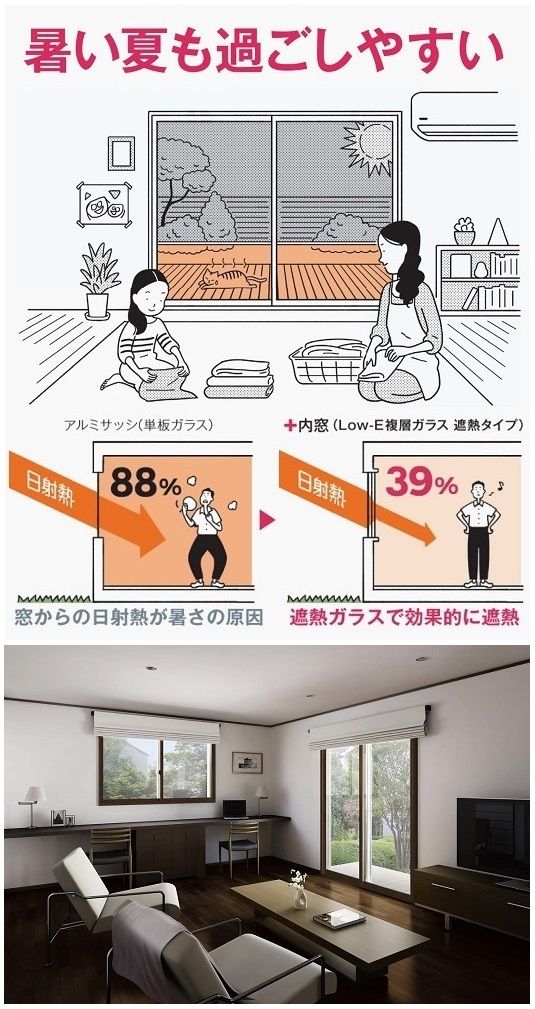 》来店不要、現場確認、見積りは無料《 エコ内窓の修理、エコ内窓の後付けは、富山県内全域に対応します。 富山県西部:高岡市、射水市、氷見市、小矢部市、砺波市、南砺市 富山県東部:富山市、滑川市、中新川郡、魚津市、黒部市、下新川郡 いい製品を、どこよりも安く! 「エコ内窓のガラスが割れた」、「エコ内窓のカギが閉まりにくい」、「エコ内窓で防音したい」、「エアコンの効きを良くして、もっと節電したい」など、エコ内窓の修理から、ニーズに対応した窓のリフォーム工事まで、窓まわりのことなら何でもお任せください。窓の専門店です。 "Smart&Eco"な生活スタイル みなさんの住まいでは、 冷暖房機器のパワーをいくら上げてもなかなか効果を感じない、 ということはありませんか? 一般的な住まいでは、外壁や屋根のほか、 窓や扉などの開口部からも意外に多くの熱が出入りしています。住まいの断熱は、人が環境と共生しながら快適に暮らしていくうえで、 とても大きなメリットがあります。 これからの断熱キーワード? 「窓」 平成4年省エネ基準で建てた住宅モデルにおける例では、 夏は外からの熱の侵入は、約 7 割が窓から、 また、冬になると暖房熱の約 5 割が窓から流出します。 窓からの熱の侵入・流出を効果的に防ぐことで経済的で快適な暮らしをささえます。 YKK AP エコ内窓 プラマードU省エネ 冷暖房コストを節約でき、夏は涼しく冬は暖かく快適になります。快適 結露の発生を抑制します。気になる外の騒音対策にも有効です。安心 二重窓で侵入しにくく、防犯合わせガラスを組合せればさらに安心です。お手軽 わずか約60分で施工完了。マンションリフォームにも最適です。どこでも リビング、和室、洗面所から浴室まで窓のタイプに合せて取付け可能です。 窓で健康 寒い冬場、実は“ヒートショック”の危険がいっぱい! そんなときは「窓リフォーム」がおすすめです。 家の中の温度差を小さくすれば、日々の暮らしがもっと快適になります。 》施工実績・トップクラス・創業42周年《 【工事の流れ】1.事前の打合せ。窓まわりの大きさやエコ内窓の種類を確認。2.工事開始。今ある窓の内側(額縁)に、エコ内窓の設置。3.建付調整・チェックを行い工事完了。 【工事時間】 約60分。 現場確認、見積りは無料!まずはお電話ください! 24時間受付 0120-375-345アルミ建材和田 〒933-0062 富山県高岡市江尻856-2 価格保証 かならず他店より安くします!ぜひ、ご相談ください! (社)日本サッシ協会加盟店 (社)カーテンウォール・防火開口部協会加盟店 ◇スタッフは、(社)富山県建築組合連合会に加盟した高岡市の建築組合員です。富山県建築組合連合会では市や町のご協力のもと県内13箇所で、『無料の住宅相談所』を開設しています。富山県の気候風土に適した丈夫で快適な新築や増改築はもちろん、住宅診断や耐震補強工事まで、住まいのことなら何でも、お気軽にご相談ください。 【富山県西部:営業エリア】高岡市、射水市、氷見市、小矢部市、砺波市、南砺市【富山県東部:営業エリア】富山市、滑川市、中新川郡、魚津市、黒部市、下新川郡 【所在地】富山県高岡市江尻856-2 Tel 0120-375-345 【取扱メーカー】三協アルミ、YKK AP、リクシル、旭硝子、日本板硝子、美和ロック、住友3M 来店不要!(電話で、24時間受付中!)