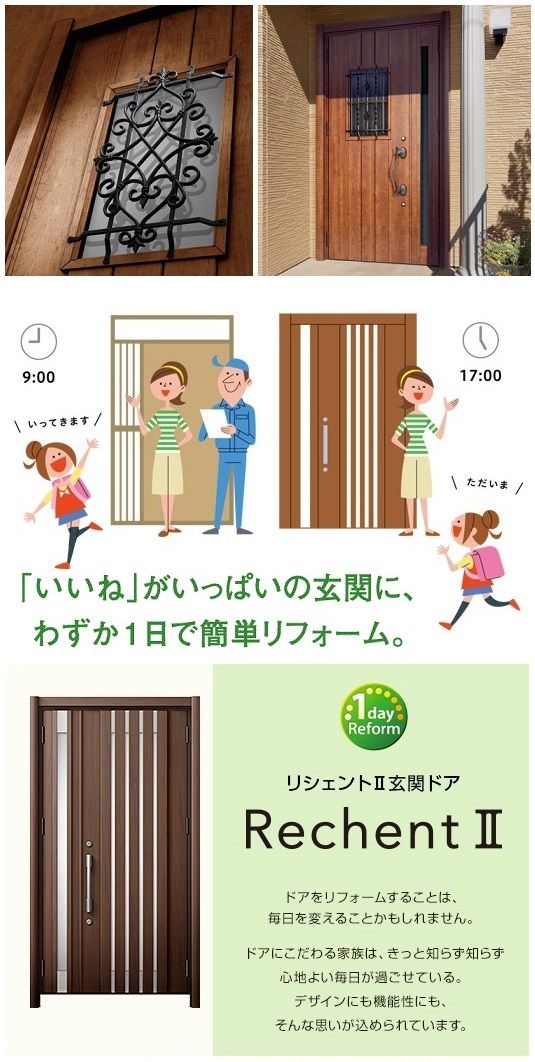 》来店不要、現場確認、見積りは無料《 玄関ドアの修理、玄関ドアの交換は、富山県内全域に対応します。富山県西部:高岡市、射水市、氷見市、小矢部市、砺波市、南砺市富山県東部:富山市、滑川市、中新川郡、魚津市、黒部市、下新川郡 いい製品を、どこよりも安く! 「玄関ドアのガラスが割れた」、「玄関ドアのカギ(ハンドル錠)が壊れた」、「もっと明るく暖かい玄関にしたい」、「さわやかな自然の風を取り入れることができる玄関にしたい」、「玄関ドアの防犯面をよくしたい。家族を守りたい」、「最新のスマート ドアに、交換したい」など、玄関ドアの修理から、ニーズに対応した玄関のリフォーム工事まで、玄関まわりのことなら何でもお任せください。 LIXIL リフォーム玄関ドア リシェント2玄関ドアをリフォームすると、もっと快適に、もっと美しく、あなたの暮らしも変わります。リシェントなら、「行ってきます」と「ただいま」の間に、リフォームできます。 1日で、わが家の表情が美しく。 1年中心地よく、快適に。採風 爽やかな風が通り抜けて、不快なにおいやジメジメも解消。断熱 複層ガラスや綿密な構造によって、効果的な断熱を実現。採光 陽の光を心地よく取り入れて、暗かった玄関も明るくなります。防犯 家族を強く守る。『2ロック』で、防犯性能が高まります。 》施工実績・トップクラス・創業42周年《 【工事の流れ】1.事前の打合せ。玄関まわりの大きさや玄関ドアの種類を確認。2.工事開始。古くなったドアを撤去して、新しい断熱ドアを設置。3.シーリング・建付調整・チェックを行い工事完了。 【工事期間】 半日~1日。 現場確認、見積りは無料!まずはお電話ください! 24時間受付 0120-375-345アルミ建材和田 〒933-0062 富山県高岡市江尻856-2 価格保証 かならず他店より安くします!ぜひ、ご相談ください! (社)日本サッシ協会加盟店(社)カーテンウォール・防火開口部協会加盟店 ◇スタッフは、(社)富山県建築組合連合会に加盟した高岡市の建築組合員です。富山県建築組合連合会では、市や町のご協力のもと県内13箇所で、『無料の住宅相談所』を開設しています。富山県の気候風土に適した快適で丈夫な新築や増改築はもちろん、住宅診断や耐震補強工事まで、住まいのことなら何でも、お気軽にご相談ください。 【富山県西部:営業エリア】高岡市、射水市、氷見市、小矢部市、砺波市、南砺市【富山県東部:営業エリア】富山市、滑川市、中新川郡、魚津市、黒部市、下新川郡 【所在地】富山県高岡市江尻856-2 Tel 0120-375-345 【取扱メーカー】三協アルミ、YKK AP、リクシル、旭硝子、日本板硝子、美和ロック、住友3M 来店不要!(電話で、24時間受付中!)