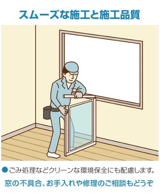 》来店不要、現場確認、見積りは無料《 窓ガラス修理、窓ガラス(アタッチメント付複層ガラス)交換は、富山県内全域に対応します。富山県西部:高岡市、射水市、氷見市、小矢部市、砺波市、南砺市富山県東部:富山市、滑川市、中新川郡、魚津市、黒部市、下新川郡 いい製品を、どこよりも安く! 「窓ガラスが割れた」、「エコ内窓のカギ(クレセント錠)が壊れた」、「防犯ガラスに交換したい」、「高性能トリプルガラス樹脂窓に興味がある」など、窓ガラスの修理から、ニーズに対応した窓のリフォーム工事まで、窓まわりのことなら何でもお任せください。窓の専門店です。 "Smart&Eco"な生活スタイル みなさんの住まいでは、冷暖房機器のパワーをいくら上げてもなかなか効果を感じない、ということはありませんか?一般的な住まいでは、外壁や屋根のほか、窓や扉などの開口部からも意外に多くの熱が出入りしています。住まいの断熱は、人が環境と共生しながら快適に暮らしていくうえで、とても大きなメリットがあります。 これからの断熱キーワード? 「窓」平成4年省エネ基準で建てた住宅モデルにおける例では、夏は外からの熱の侵入は、約 7 割が窓から、また、冬になると暖房熱の約 5 割が窓から流出します。窓からの熱の侵入・流出を効果的に防ぐことで経済的で快適な暮らしをささえます。 ガラス選びで更に賢く節約夏期の日射遮蔽と冬期の日射取得を考えて Low-Eガラスにしたら、年間冷暖房費「10%カット」冬は室内熱を外へ逃がさないため、冷暖房効率を高めます。いちばん効きやすいところから手を入れる。それがかしこいリフォームのコツ。そのカギをにぎっているのは、何といっても、窓。手軽にはじめて、効果が出やすい窓のリフォームがおすすめです。 YKK AP アタッチメント付複層ガラス単板ガラス用サッシに簡単に取付けて断熱性をアップ。既存の窓をそのまま活かせる。低コスト、スピード施工で効率よく省エネ化。既存の障子にそのままセットできる後付型の複層ガラスです。外壁を壊すなどの大がかりな工事は不要で、サッシから単板ガラスを外して「アタッチメント付複層ガラス」に組み替えるだけです。取付けは室内の作業で、1窓あたり約60分で完了します。 結露を抑えるために住まいを断熱化する窓は冷たい外気の影響を一番受けやすいと言えます。したがって、窓を断熱化することが大きなポイントとなります。断熱窓(YKKAP Low-E複層ガラス)を使うことで、外の冷気が室内に伝わりにくく、室内側の窓フレームの表面温度が下がりにくくなるので、結露の発生を抑えることができます。 》施工実績・トップクラス・創業42周年《 【工事の流れ】1.事前の打合せ。アタッチメント付複層ガラスの大きさや種類を確認。2.工事開始。古いガラスを撤去して、新しいアタッチメント付複層ガラスを設置。3.建付調整・チェックを行い工事完了。 【工事時間】 約60分。 現場確認、見積りは無料!まずはお電話ください! 24時間受付 0120-375-345アルミ建材和田 〒933-0062 富山県高岡市江尻856-2 価格保証 かならず他店より安くします!ぜひ、ご相談ください! (社)日本サッシ協会加盟店(社)カーテンウォール・防火開口部協会加盟店 ◇スタッフは、(社)富山県建築組合連合会に加盟した高岡市の建築組合員です。富山県建築組合連合会では市や町のご協力のもと県内13カ所で、『無料の住宅相談所』を開設しています。富山県の気候風土に適した丈夫で快適な新築や増改築はもちろん、住宅診断や耐震補強工事まで、住まいのことなら何でも、お気軽にご相談ください。 【富山県西部:営業エリア】高岡市、射水市、氷見市、小矢部市、砺波市、南砺市【富山県東部:営業エリア】富山市、滑川市、中新川郡、魚津市、黒部市、下新川郡 【所在地】富山県高岡市江尻856-2 Tel 0120-375-345 【取扱メーカー】三協アルミ、YKK AP、リクシル、旭硝子、日本板硝子、美和ロック、住友3M 来店不要!(電話で、24時間受付中!)