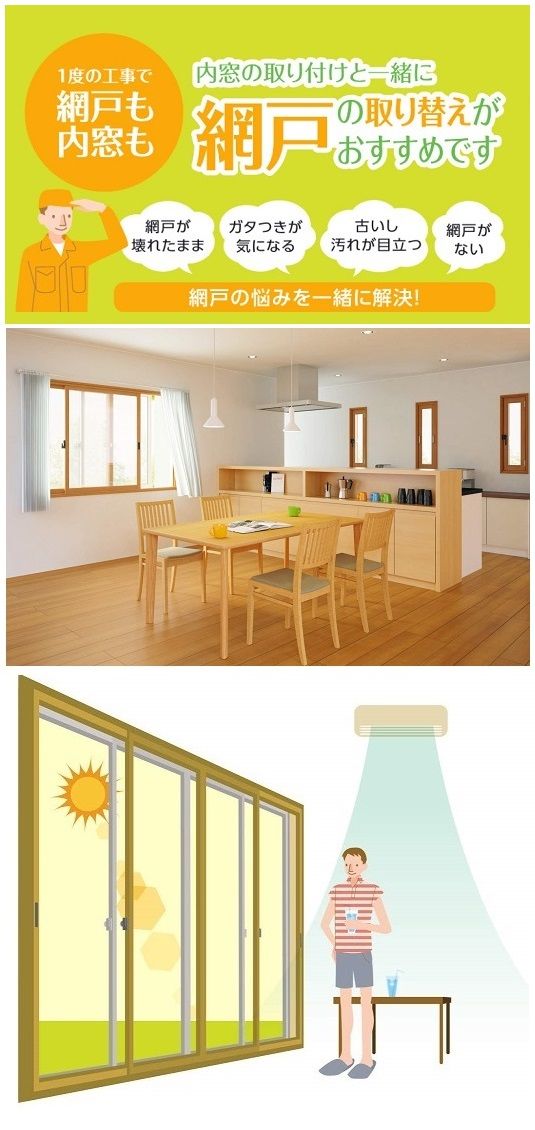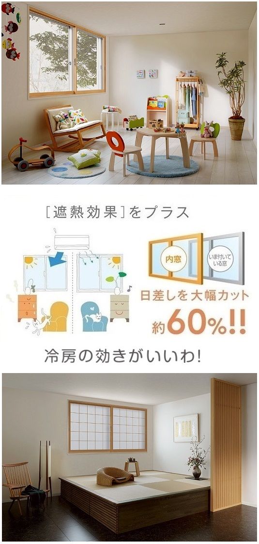 》来店不要、現場確認、見積りは無料《 断熱内窓の修理、断熱内窓の取付けは、富山県内全域に対応します。富山県西部:高岡市、射水市、氷見市、小矢部市、砺波市、南砺市富山県西部:富山市、滑川市、中新川郡、魚津市、黒部市、下新川郡 いい製品を、どこよりも安く! 「断熱内窓のガラスが割れた」、「断熱内窓のカギ(クレセント錠)が壊れた」、「防音のために断熱内窓がほしい」、「断熱内窓の省エネ(節電)効果に興味がある」など、断熱内窓の修理から、ニーズに対応した窓のリフォーム工事まで、窓まわりのことなら何でもお任せください。窓の専門店です。 リクシル リフォーム内窓 インプラスウッド/インプラスあなたの家の窓にも、カンタンに後付けできる 防音・断熱内窓「インプラス」を。もう一枚、窓をプラスしてぐっと快適な住空間へ。あつい!さむい!うるさい!のは、窓の問題じゃないですか?家の暖かさを逃がしているのは、窓でした。インプラスを付ければ暖冷房費がグッと減り、家計にも地球にもやさしくなります。外の音が気になる方にも、家の中の音を漏らしたくない方にも、インプラスを付ければ、双方向の遮音性が大幅にUPします。さらに不快な結露も抑えます。ダストバリア(業界初)で ホコリを寄せ付けないので、汚れにくく、お掃除がグンとラクになります。[断熱効果]をプラスインプラスは樹脂製。樹脂はアルミに比べて熱伝導率が、1/1000程度と、断熱効果に優れた素材です。さらに今ある窓との間に生まれる空気層が室内の熱を外に伝えにくくし、断熱効果を発揮します。外気温の影響を受けにくい快適な室内環境を実現します。[遮熱効果]をプラス遮熱高断熱複層ガラス入インプラスを使うと、室外側ガラスにコーティングした特殊金属膜により、夏の強い日差しを約60%カットし、冷房効果を高めます。室内の明るさはそのままに、窓から入る熱をカットし、紫外線も大幅に遮断。健康を守るのはもちろん、家具やインテリアの色あせも防ぎます。 》施工実績・トップクラス・創業42周年《 【工事の流れ】1.事前の打合せ。窓まわりの大きさや断熱内窓の種類を確認。2.工事開始。今ある窓の室内側(窓額縁)に、断熱内窓を設置。3.建付調整・チェックを行い工事完了。 【工事時間】 約60分。 現場確認、見積りは無料!まずはお電話ください! 24時間受付 0120‐375‐345アルミ建材和田 〒933-0062 富山県高岡市江尻856-2 価格保証 かならず他店より安くします!ぜひ、ご相談ください! (社)日本サッシ協会加盟店(社)カーテンウォール・防火開口部協会加盟店 ◇スタッフは、(社)富山県建築組合連合会に加盟した高岡市の建築組合員です。富山県建築組合連合会では、市や町のご協力のもと県内13箇所で、『無料の住宅相談所』を開設しています。富山県の気候風土に適した丈夫で快適な新築や増改築はもちろん、住宅診断や耐震補強工事まで、住まいのことなら何でも、お気軽にご相談ください。 【富山県西部:営業エリア】高岡市、射水市、氷見市、小矢部市、砺波市、南砺市【富山県東部:営業エリア】富山市、滑川市、中新川郡、魚津市、黒部市、下新川郡 【所在地】富山県高岡市江尻856-2 Tel 0120-375-345 【取扱メーカー】三協アルミ、YKK AP、リクシル、旭硝子、日本板硝子、美和ロック、住友3M 来店不要!(電話で、24時間受付中!)