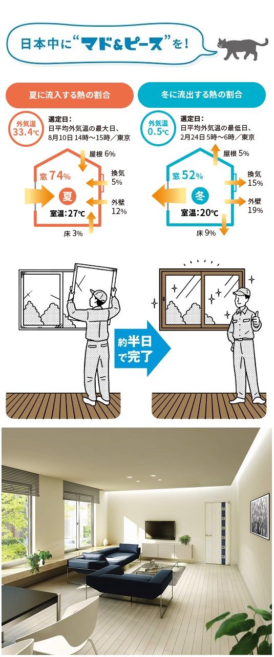 》来店不要、現場確認、見積りは無料《 窓(サッシ)の修理、窓(断熱サッシ)の交換は、富山県内全域に対応します。富山県西部:高岡市、射水市、氷見市、小矢部市、砺波市、南砺市富山県東部:富山市、滑川市、中新川郡、魚津市、黒部市、下新川郡 いい製品を、どこよりも安く! 「窓ガラスが割れた」、「エコ内窓のカギ(クレセント錠)が壊れた」、「防犯ガラスに交換したい」、「高性能トリプルガラス樹脂窓に興味がある」など、窓(サッシ)の修理から、ニーズに対応した窓のリフォーム工事まで、窓まわりのことなら何でもお任せください。窓の専門店です。 "Smart&Eco"な生活スタイル みなさんの住まいでは、冷暖房機器のパワーをいくら上げてもなかなか効果を感じない、ということはありませんか?一般的な住まいでは、外壁や屋根のほか、窓や扉などの開口部からも意外に多くの熱が出入りしています。住まいの断熱は、人が環境と共生しながら快適に暮らしていくうえで、とても大きなメリットがあります。 これからの断熱キーワード? 「窓」 平成4年省エネ基準で建てた住宅モデルにおける例では、夏は外からの熱の侵入は、約 7 割が窓から、また、冬になると暖房熱の約 5 割が窓から流出します。窓からの熱の侵入・流出を効果的に防ぐことで経済的で快適な暮らしをささえます。 もっと快適に、もっと省エネに。リフォームのスタートは、 「窓」 です。いちばん効きやすいところから手を入れる。それがかしこいリフォームのコツ。そのカギをにぎっているのは、何といっても、窓。手軽にはじめて、効果が出やすい窓のリフォームがおすすめです。YKK APは窓のリフォームを通じ、住宅の省エネ化を積極的に推進しています。 》施工実績・トップクラス・創業42周年《 【工事の流れ】1.事前の打合せ。窓まわりの大きさや窓(サッシ)の種類を確認。2.工事開始。古い窓(サッシ)を撤去して、新しい断熱サッシを設置。3.シーリング・建付調整・チェックを行い工事完了。 【工事時間】 約3時間。 現場確認、見積りは無料!まずはお電話ください! 24時間受付 0120-375-345アルミ建材和田 〒933-0062 富山県高岡市江尻856-2 価格保証 かならず他店より安くします!ぜひ、ご相談ください! (社)日本サッシ協会加盟店(社)カーテンウォール・防火開口部協会加盟店 ◇スタッフは、(社)富山県建築組合連合会に加盟した高岡市の建築組合員です。富山県建築組合連合会では、市や町のご協力のもと県内13箇所で、『無料の住宅相談所』を開設しています。富山県の気候風土に適した丈夫で快適な新築や増改築はもちろん、耐震補強工事や住宅診断まで、住まいのことなら何でも、お気軽にご相談ください。 【富山県西部:営業エリア】高岡市、射水市、氷見市、小矢部市、砺波市、南砺市【富山県東部:営業エリア】富山市、滑川市、中新川郡、魚津市、黒部市、下新川郡 【所在地】富山県高岡市江尻856-2 Tel 0120-375-345 【取扱メーカー】三協アルミ、YKK AP、リクシル、旭硝子、日本板硝子、美和ロック、住友3M 来店不要!(電話で、24時間受付中!)