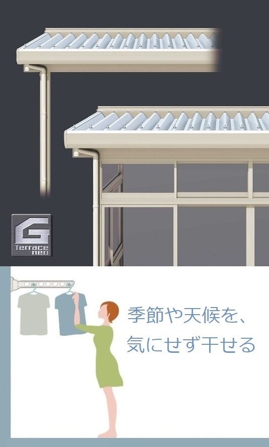 ≫現場確認、見積りは無料≪折板テラス修理、折板テラス新設工事は、富山県内全域に対応します。富山県西部:高岡市、射水市、氷見市、小矢部市、砺波市、南砺市富山県東部:富山市、滑川市、中新川郡、魚津市、黒部市、下新川郡 いい製品を、どこよりも安く! 「折板テラスの屋根が壊れた」、「折板テラスの柱が折れた」、「洗濯物干し場として、折板テラスがほしい」など、折板テラス屋根の修理から、リフォームニーズに対応した折板テラスの囲い工事まで、テラスまわりのことなら何でもお任せください。エクステリア工事の専門店です。 YKK AP スチール折板屋根ふき材 テラス屋根・テラス囲い ジーテラスneo豪腕シリーズにテラス囲いがラインアップ 強さを誇る「ジーポートneo」の性能を活かし、豪腕「ジーテラス」も充実・リニューアル。多くのご要望を寄せられたテラス囲いを規格設定。耐積雪荷重性能は4500N/平米。従来の1.6外倍の強度を確保。ますます強度と快適性の高い暮らしをご提供します。長期にわたる積雪期間中、安心して収納や物干しができます。「ジーテラスneo」は、積雪150センチに対応できる耐積雪荷重性能を保有しています。この性能を維持するため、間口によって桁のサイズを違えて対応しています。桁は高強度のアルミ押出し形材の採用により、重量を抑えながら高い強度を確保しました。強度は一般的なアルミ押出し形材の約1.6倍です。 ≫施工実績トップクラス・創業45周年≪ 【工事の流れ】1.事前の打合せ。大きさや種類を確認。2.工事開始。折板テラス屋根を設置。3.シーリング・建付調整・チェックを行い工事完了。 【工事期間】 約1日。 見積りは無料!まずはお電話ください! 24時間受付 0120-375-345アルミ建材和田 富山県高岡市江尻856-2 【価格保証】他店より安くします! ◇富山県の気候風土に適した丈夫で快適なリフォームから耐震補強工事まで住まいのことなら何でも、お気軽にご相談ください。 (社)日本サッシ協会加盟店(社)カーテンウォール・防火開口部協会加盟店【富山県西部:営業エリア】高岡市、射水市、氷見市、小矢部市、砺波市、南砺市【富山県東部:営業エリア】富山市、滑川市、中新川郡、魚津市、黒部市、下新川郡 【所在地】高岡市江尻856-2 Tel 0120-375-345 【取扱メーカー】三協アルミ、YKKA P、リクシル、AGC、美和ロックなど 来店不要!電話で、24時間受付中!