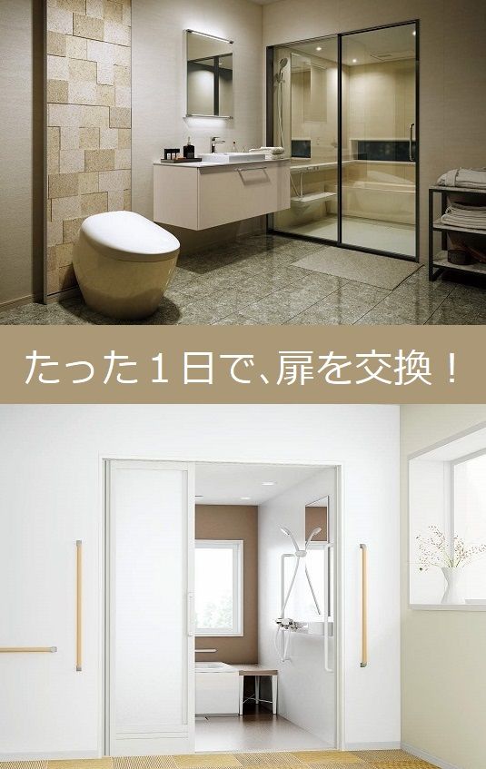 ≫現場確認、見積りは無料≪浴室ドアの修理、浴室ドアの交換は、富山県内全域に対応します。富山県西部:高岡市、射水市、氷見市、小矢部市、砺波市、南砺市富山県東部:富山市、滑川市、中新川郡、魚津市、黒部市、下新川郡 いい製品を、どこよりも安く! 「古い浴室ドア・折戸のガラスが割れた」、「直したいけどメーカーが分からない」、「もう生産してないと言われた」、「浴室の出入口を広く、使いやすい大開口引戸に、リフォームしたい」など、浴室ドアの修理から、ニーズに対応した浴室出入口のリフォーム工事まで、浴室出入口のことなら何でもお任せください。 YKK AP 浴室出入口 サニセーフ2サニセーフ2シリーズに、ドアHGタイプが新たにラインアップ。強化ガラス仕様のすっきりとしたデザインで、浴室を開放感あふれる空間に演出します。 ≫施工実績トップクラス・創業45周年≪ 【工事の流れ】1.事前の打合せ。大きさや種類を確認。2.工事開始。古い浴室ドアを最新の浴室ドアへ交換。3.シーリング・建付調整・チェックを行い工事完了。 【工事期間】 約1日。 見積りは無料!まずはお電話ください! 24時間受付 0120-375-345アルミ建材和田 富山県高岡市江尻856-2 【価格保証】他店より安くします! ◇富山県の気候風土に適した丈夫で快適なリフォームから耐震補強工事まで住まいのことなら何でも、お気軽にご相談ください。(社)日本サッシ協会加盟店(社)カーテンウォール・防火開口部協会加盟店 【富山県西部:営業エリア】高岡市、射水市、氷見市、小矢部市、砺波市、南砺市【富山県東部:営業エリア】富山市、滑川市、中新川郡、魚津市、黒部市、下新川郡 【所在地】高岡市江尻856-2 Tel 0120-375-345 【取扱メーカー】三協アルミ、YKK AP、リクシル、AGC、美和ロックなど 来店不要!電話で、24時間受付中!