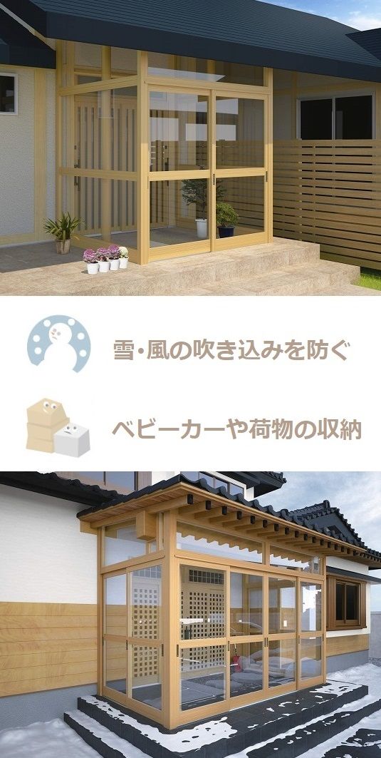 ≫現場確認、見積りは無料≪富山県西部:高岡市、射水市、氷見市、小矢部市、砺波市、南砺市富山県東部:富山市、滑川市、中新川郡、魚津市、黒部市、下新川郡 いい製品を、どこよりも安く! 「雨や雪、などが吹き込んで、出入りに困る」、「子供のベビーカーや三輪車って、玄関に置いとくとジャマよね・・・」、「宅配便で届いた荷物が大きかったり、数が多いとき置き場所に困るのよね・・・」など、風除室の修理から、リフォームニーズに対応した風除室の新設工事まで、住まいの囲い工事のことなら何でもお任せください。エクステリア工事の専門店です。 YKK AP 風除室 セフター3進化する住まいに、進化する風除室を。より美しく、より個性的に、より快適に、より使い勝手良く。住まいに対するニーズは、年々高まっています。特に、住まいの第一印象を決める玄関まわりは、こだわりが強くなっています。コーディネイトに、収納に、雪・風除けに。「セフター3」は、その全てにこだわり、新規格を充実。風除室の新しいスタンダードです。窓を閉めたまま換気ができ、冬だけでなく夏も快適なエントランスに。ホコリや虫などの侵入も軽減し、1年中快適な空間は使い方自由自在。 ≫施工実績トップクラス・創業45年≪ 【工事の流れ】1.事前の打合せ。大きさや種類を確認。2.工事開始。今ある玄関に合わせて風除室を設置。3.シーリング・建付調整・チェックを行い工事完了。 【工事期間】 約1日。 見積りは無料!まずはお電話ください! 24時間受付 0120-375-345アルミ建材和田 富山県高岡市江尻856-2 【価格保証】 他店より安くします! ◇富山県の気候風土に適した丈夫で快適なリフォームから耐震補強工事まで住まいのことなら何でも、お気軽にご相談ください。 (社)日本サッシ協会加盟店(社)カーテンウォール・防火開口部協会加盟店 【富山県西部:営業エリア】高岡市、射水市、氷見市、小矢部市、砺波市、南砺市【富山県東部:営業エリア】富山市、滑川市、中新川郡、魚津市、黒部市、下新川郡 【所在地】高岡市江尻856-2 TEL 0120-375-345 【取扱メーカー】三協アルミ、YKK AP、リクシル、AGC、美和ロックなど 来店不要!電話で、24時間受付中!