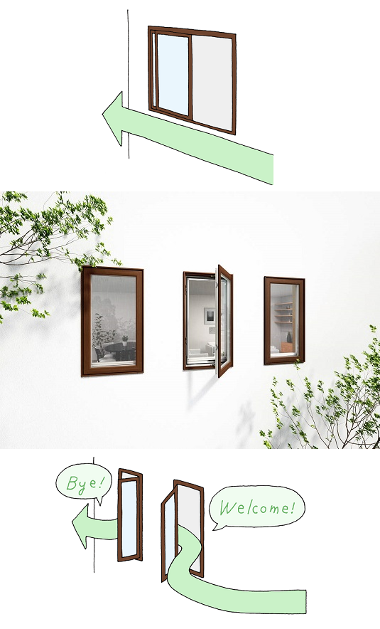 ≫現場確認、見積りは無料≪網戸の張替、網戸の修理、網戸の設置は、富山県内全域に対応します。富山県西部:高岡市、射水市、氷見市、小矢部市、砺波市、南砺市富山県東部:富山市、滑川市、中新川郡、魚津市、黒部市、下新川郡いい製品をどこよりも安く!「網戸に穴が開いた」「上げ下げ網戸のフレームが曲がった」「スライド網戸が動かない」「勝手口ドアから風を通したい」「効率よく換気したい」など、網戸の張替から新しい網戸の作製まで網戸のことなら何でもお任せください。風通しを良くしたい。風で季節を感じる住まい。心地よいだけでなく、家も長持ちします。風と親しむには、まず網戸から。豊富な種類で、いろいろな窓に対応します。進化した網戸で風通しも眺望もアップ。網戸をかえるだけで風通しはよくできます。網糸がスリムな網戸「クリアネット」なら風の抵抗が少なく通風量が約2割アップ。引違い窓やすべりだし窓など窓の種類に合せた網戸を選べ、どのメーカーの窓にも付けられます。通風効果だけでなく、網糸がスリムなため網目が視界を妨げにくく、眺めもよくなります。網目が細かいため、より小さな虫の侵入を防ぐ効果もあります。かんたんな窓交換リフォームで風の入りやすい窓へ。家の通風は、お住まいの地域の季節ごとの風向きを知り、それにあわせて適切な風の入口や出口をつくることが大切です。壁を壊さずに窓を交換するリフォームで、開かないタイプの窓を開く窓に替えたり、風向きとの相性を考えて窓の開き方を変更することで、風を取り入れやすくすることができます。比べてください!富山県内最安値!クリアネット:細かい網目で防虫性をアップ。眺望性と通気性も向上。糸の径が細くネットが見えにくいため、景色がクリアに見え、開放感を与えます。通風量もアップし、夏も快適に。エアコンに頼らない節電生活につながります。網目の交差部の隙間をなくし、お手入れもラクラクです。眺めを、よりクリアに。パネル系網戸の糸の線径は、ブラックネットの場合0.25mm、クリアネット場合0.15mmと、約6割の細さを実現しました(ロール網戸の糸の線径は、ブラックネットの場合0.28mm、クリアネットの場合0.22mm)。 ネットが視界を妨げないので、景色がクリアに見えて部屋に開放感が生まれます。爽やかな風を、さらに多く。線径が細くなったことで、単位面積あたりの開口率が高まりました。 パネル系網戸の開口率は、ブラックネットの場合68%、クリアネットの場合74%となります。これにより通風量が約2割も多くなります(ロール網戸の開口率は、ブラックネットの場合66% 、クリアネットの場合71%)。お掃除が手軽に。糸と糸の交差部を融着する技術により、ホコリがすき間に入りにくい構造です。表面の凹凸も少なくなり、お手入れがより手軽になりました。小さな虫も、さらに入りにくく。パネル系網戸の網目開口は、ブラックネットの場合1.2mm×1.2mm、クリアネットの場合0.9mm×0.9mmと、約20%細かくなりました(ロール網戸の網目開口は、ブラックネットの場合1.1mm×1.3mm、クリアネットの場合.2mm×1.2mm)。 小さい虫の侵入もしっかり防げます。≫まずは無料で問合せ見積もり依頼を≪アルミ建材和田がお客さまに選ばれる3つのポイントPOINT1:地域に根差した専門店POINT2:安心の施工実績POINT3:高いお客さま満足度窓がある部屋では「2方向の窓を、1回、数分間程度、全開にしましょう。換気回数は毎時2回以上確保しましょう」と呼びかけています。どのような窓の開け方をすると効率よく換気ができるのか?YKK APでは住宅モデルを使用してシミュレーションを実施。窓の開け方による換気の違いを可視化しました。ただ窓を開けただけでは十分な換気にならない場合もあります。効率的な換気のため、いくつかポイントを抑えておきましょう。換気には風の「入口」と「出口」をつくることが大切です。窓を1カ所開けても換気効果はありますが、空気の淀みが解消されにくいことがあります。空気の流れをつくるため、部屋の中に複数の窓がある場合は二方向の壁の窓を開けましょう。特に対角配置の窓を開けると部屋の中を空気が循環しやすくなり、効果的に空気の入れ替えができます。何度でも徹底的に価格競争します!必ず他社より安くなります!大切な「すまい」も「くらし」もゆたかにグレードアップ。選ぶのはお客さまです。お客さまの暮らしをより快適にするためのプランをご提案いたします。YKKAP スライド網戸XMH引違い窓と組合せるスライド網戸。開放感と風通しのよさ、防虫性の高さが大きな開口には効果的です。ネットは、眺望性・通風性・防虫性・清掃性に優れたクリアネットがおすすめです。中桟がなく見た目スッキリ。YKK APのスライド網戸は標準で中桟がなく、眺望性や開放感に優れています。レールから外れにくく安心。脱輪防止機構付戸車を採用。網戸が浮いても、戸車がバネで押されレールから外れるのを防ぎます。選べる2種類のネット。眺望性