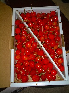 今、泥棒が最も狙うサクランボは佐藤錦らしいですがその佐藤錦のもぎり立てのサクランボを頂きました。写真の通りです。早速・・食べてみました・・・まいうーーこのサクランボは本場山形の佐藤錦です。