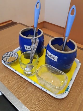 たれはしょうゆだれと味噌だれを合わせて小皿へ