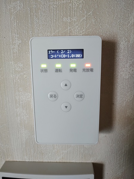 ふと太陽光・蓄電池のモニターを見るとエラーの赤文字