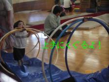 今日は土曜日なので、パパも一緒に体操クラブへおでかけしてきたよ!翔君とママの体操姿をパパは一生懸命ビデオを撮ったり、写真を撮ったりしてくれた。さすがに3日間も通うと、雰囲気には慣れてきた様子だった翔君。いつも通りママに手や足を動かしてもらい、頑張っていたね!そんな中でも、お得意の競技があったので、写真で紹介します! 実は・・・ここで立ち止まってループをくわえようとしているのです(笑)でも上手にくぐることはできましたよ!それから、みんなで『ミッキーマウスマーチ』の音楽に合わせてダンスをしました。翔君は操り人形のようだけど、めちゃくちゃ楽しんでます! 何とか無事に体験は終了!!今後は会員になるかどうか、パパとママで検討します!クラブが終わってから、3人で食事をして夕方前には帰宅しました。よほど疲れたのか、翔君はお布団に倒れこむように寝んねです。翔君お疲れ様(^0^)