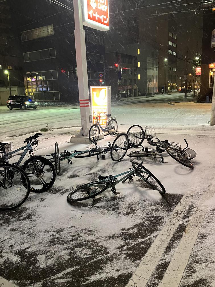 自転車も薙ぎ倒されちゃうくらいの豪雪って北海道ならではでしょ?