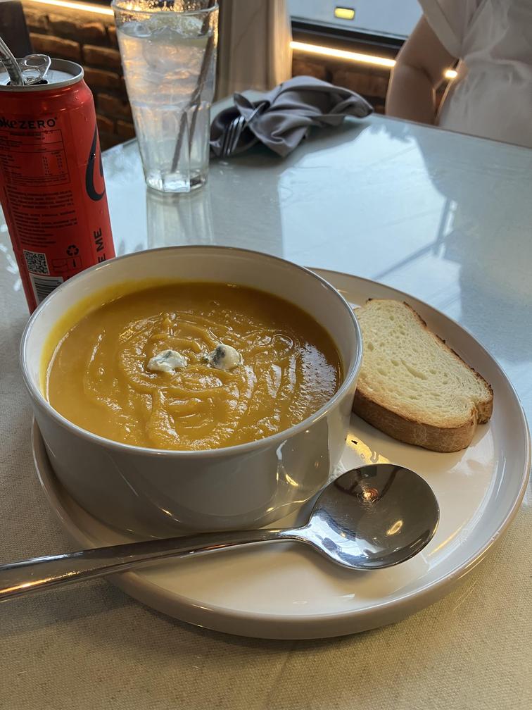 理由は分からないけど、不思議と美味しい✨ で、調子に乗って パンプキンスープも注文🎃
