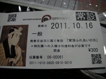 昨日は両国の江戸東京博物館へ娘と一緒に行ってきました。毎月第三週の土曜日と日曜日は600円の拝観料金が半額の300円でいいんです。 でも条件付きで毎月代3土曜日・日曜日(家族ふれあいの日、、、って誰が決めたのですしょうか?)に観覧の18歳未満の子を同伴する保護者(しかも都内在住の方のみ)2名の料金が半額となります。と江戸東京博物館のHPでは記載されてます。今回は東京在住のしかも18歳未満のお子さんをお持ちのご両親限定情報ですが、一度両国の江戸東京博物館に行かれてみてください。えど寄席の落語は生で見れてとてもおもしろいですよ。 江戸東京博物館 URL http://www.edo-tokyo-museum.or.jp/ 江戸東京博物館url http://www.edo-tokyo-museum.or.jp/