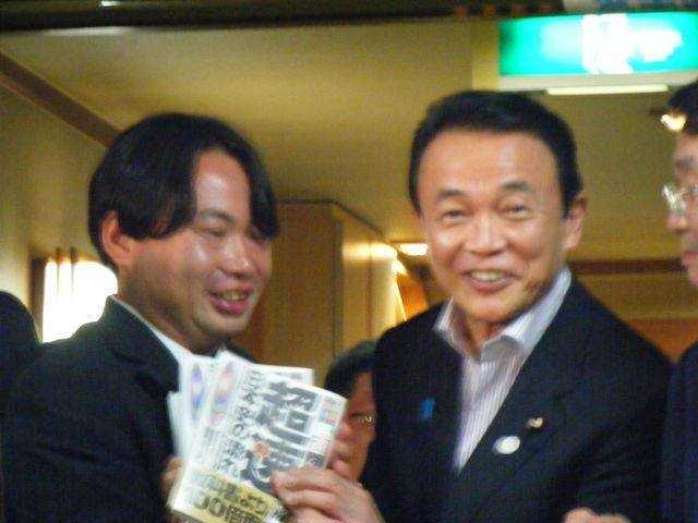 今日は洗濯と執筆デー!今日も笑顔で頑張るぞ!写真1枚目は前回も載せた★むっちゃんと総理と超速!変な縁です(笑)。麻生太郎総理の祖父は吉田茂総理ですがもともとの名前は竹内茂。実は竹内家から吉田家に養子に行ったのが吉田茂。同じ竹内一族の縁ですね。超速!日本史は日本を変える?写真2枚目★むっちゃんと植木先生植木光教先生が先日お亡くなりになった。悲しい。世界連邦運動の指導者である。元沖縄開発庁長官で沖縄復興時のトップ。僕が世界連邦の講演に行った時に会談して「竹内君、僕のやったことで沖縄の人が喜んでくれたのは大予算を組んだモノレールを引いたことではなく、海洋博の施設でもなく、首里城守礼門の復興だった。お金ではないね、相手の文化を尊重することが大切だね」と教えてくださった。フランスから勲章を贈られたのも文化や外国との交流だ。(天皇陛下からは勲一等旭日大綬章)写真は最後に国連大学の中でお会いしたとき。ご冥福をお祈りいたします。写真3枚目★むっちゃんと和音3人衆&裏馬場5店長今、近現代史の本と日露戦争の本を書いている。味方は写真の和音3人衆の2人。親友ドッキーは本名は木戸寛孝。木戸孝允の子孫で児玉源太郎の子孫でもある。植木先生のやっていた世界連邦運動の事務局次長をしていた。(事務局は参議員会館内)今後、平成の坂本竜馬として世界の廃藩置県のリーダーになってくれるはず。もう一人の竹田恒泰氏は旧皇族で明治天皇の玄孫。三笠宮殿下と仲がいい方です。近著「怨霊となった天皇」で本文で五カ所も登場させてくださりあとがきにも僕の名前が載ってます。後ろの五人は裏馬場店長五人衆!仕事に疲れた後の一杯。これで癒される。僕の恩人たちです。<酎ばっか>店長のブクチャンは日本酒のつぎ方とパスタのゆで加減が絶妙。<プレイス>店長の狂ちゃんはカクテルで僕を癒してくれます。<シーバス>店長のうっちーは笑顔が好きです(ホモじゃないですよ)。誕生日おめでとう!<ブーメラン>店長のヒロ君は役者さんでもあり和太鼓が上手!いつも笑顔でむかえてくれます。<はやし家>店長の安齋さんはいつも安らぎを与えてくれます。実はサーファーです。前回の大河ドラマ「天地人」にわが竹内流柔術が登場しました。千利休の娘「お涼」。「お涼」役は木村佳乃さん。豪傑:福島正則に短刀で切り付けられそうになり、竹内流柔術で投げ飛ばしました。主役の直江兼続の妻夫木君が「まさか、それは竹内流の柔(やわら)か?」聞くと「よくご存じで」と笑顔。今日は写真も日記も<笑顔>がテーマです!
