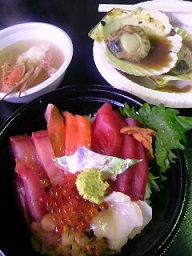 海鮮丼はわりと美味しかった、魚も分厚く切ってある