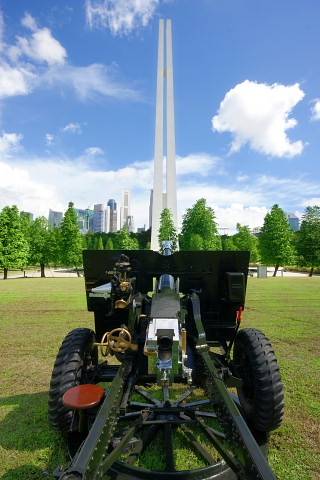そんな意味でこの砲台はどこの国も向いていない、その一方で極端に治安が高い国ですから国民に対する威圧であるのかもしれません。死刑が多い国ではありますが、武器を使う事はあまりないはずです。私の出張先の工場では曲がり角ごとにマシンガンを持っている人がいますが、アメリカ系の外資と言う事でシンガポールが自主的に守ってくれているのだとか。