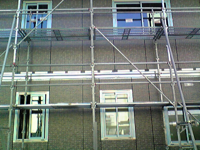 23日の勤労感謝の日も木工工事は着々と進んでおりました。4人ほどの大工さんが黙々と仕事をしていらっしゃって、「こんにちは。お世話になってます。」と声をかけると、「こんにちは。今日はお天気が良くてよかったですね。」と言われました。私は雨女なのですが、やはり営業Tが晴男だけに晴天が続いています。外壁が着いて思ったのですが、外壁の色は「メロウグレー」ソリッドスクエア柄です。どうもグレーと言うよりも茶色系に見えてしまうのは私だけでしょうか(うちの旦那もグレーには見えないと言っていて、営業さんや監督さんに電話しまくってました。陽があたると茶系に見え、写真で見るとカタログのように重みのあるグレー系に写るのです。写真は東側の外壁です。皆さんは何色に見えます上の写真はリビングのハイサッシの部分が写ってます。サッシは最後に入るのでしょうね。サッシの部分から断熱材や2階床面がよく見えていました。ん~やっぱり茶系に見えるんですよね。