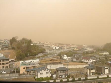 午後2:00ごろ、すごい強風とともに空がベージュ色になった。黄砂なんだろうか?こんなのは初めて見た。ニュースによると、煙霧というもののようだ。今日は東京では夏日(25.3)になった。でも、明日は最低気温3℃、最高気温12℃の予報だった。にほんブログ村