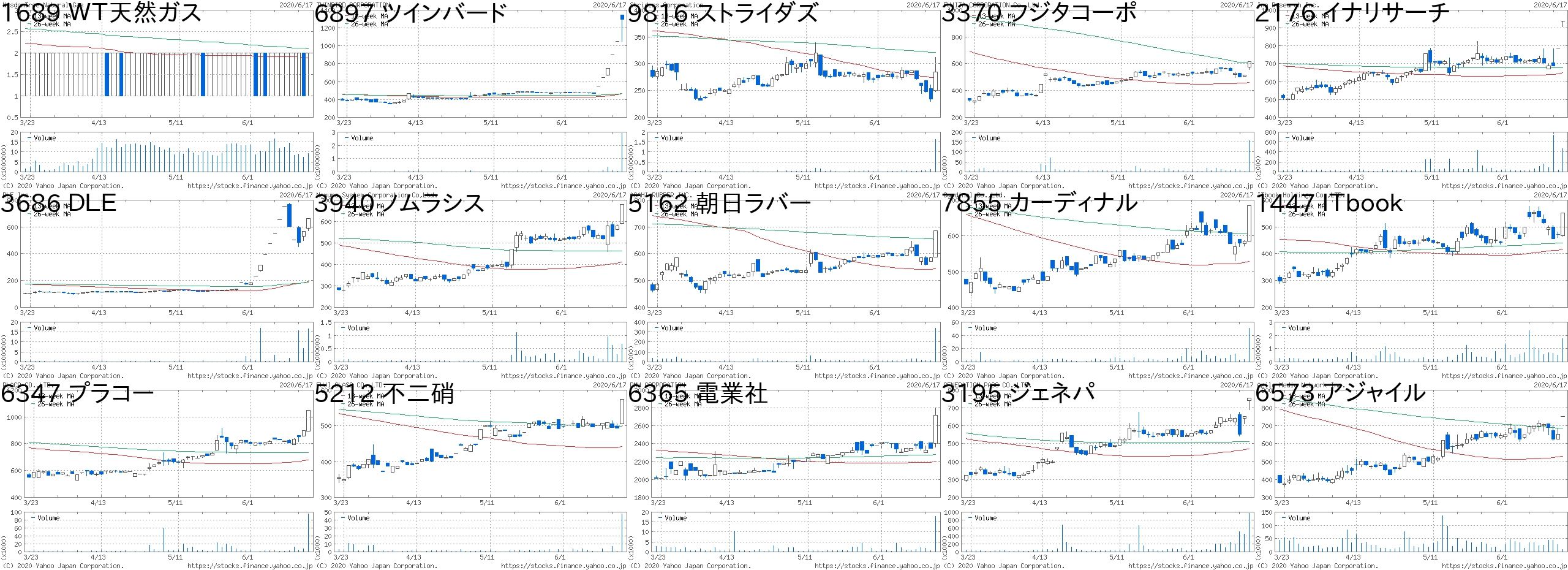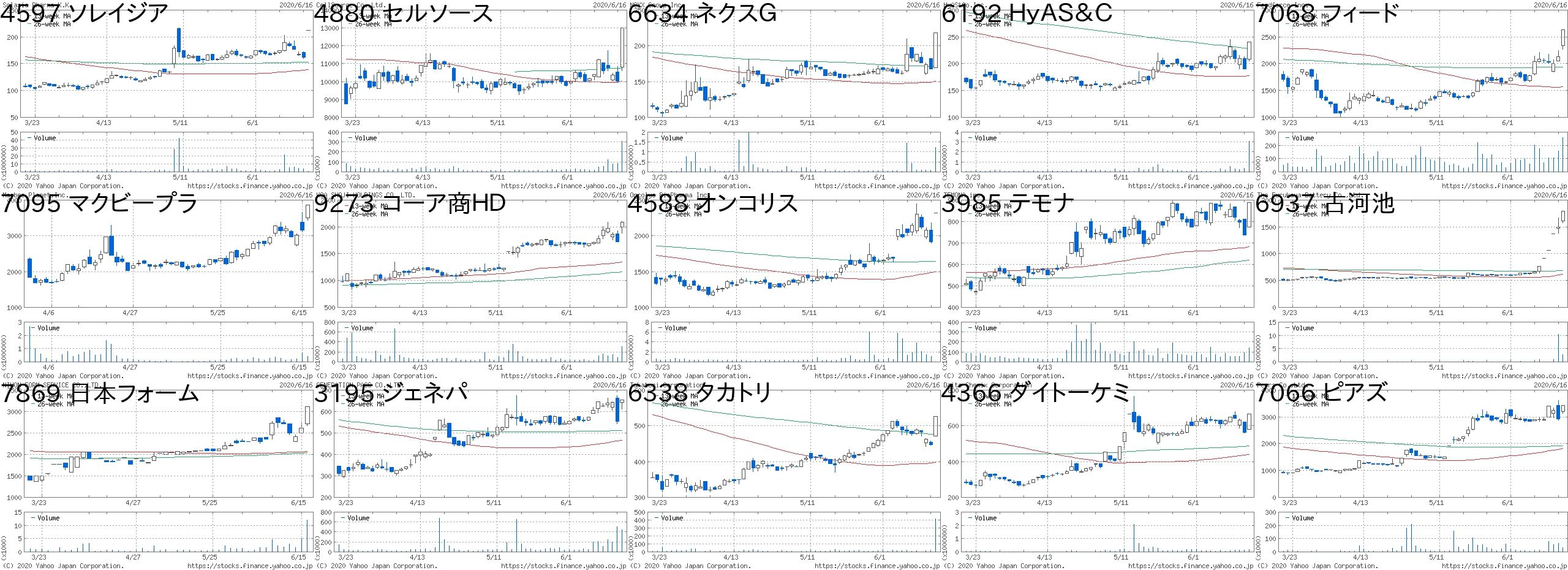 コード 銘柄名 市場 株価 前日比 前日比.1 出来高 PER PBR 利回り2586 フルッタ 東M 241 50 +26.18% 6265300 - 5.65 -4596 窪田製薬HD 東M 393 80 +25.56% 5757900 - 2.27 -6180 GMOメディ 東M 1975 400 +25.40% 52400 - 1.47 -3070 アマガサ JG 398 80 +25.16% 29400 - 2.68 -3695 GMO-R 東M 2118 400 +23.28% 197000 22.7 2.57 2.22970 グッドライフ JQ 1652 300 +22.19% 113200 18.5 3.58 -7090 リグア 東M 2275 397 +21.14% 78600 20 3.6 -3496 アズーム 東M 4310 700 +19.39% 107200 53.5 6.85 -5445 東京鉄 東1 1619 256 +18.78% 135800 - 0.35 -4784 GMO-AP JQ 512 80 +18.52% 654800 41.1 1.65 1.236026 GMOテック 東M 4490 700 +18.47% 69600 238 6.11 0.26955 FDK 東2 1005 150 +17.54% 453000 - 5.15 -9318 アジア開発 東2 7 1 +16.67% 1185900 - 1.79 -3491 GAテクノ 東M 7010 1000 +16.64% 442400 88.2 10.73 -8783 GFA JQ 260 37 +16.59% 14286800 - 2.09 -コード 銘柄名 市場 株価 前日比 前日比.1 出来高 PER PBR 利回り1689 WT天然ガス 東E 1 -1 -50.00% 5873500 - - -8894 レボリュー 東2 33 -5 -13.16% 11236200 3300 7.71 -5199 不二ラテ JQ 3050 -430 -12.36% 63800 63.5 1.24 0.984977 新田ゼラチン 東1 703 -99 -12.34% 299700 15.9 0.81 1.717865 ピープル JQ 851 -112 -11.63% 48700 - 1.82 -7855 カーディナル JG 628 -72 -10.29% 29300 - 0.55 -4399 くふう 東M 860 -96 -10.04% 209900 - 3.22 -6916 アイオデータ 東1 1136 -126 -9.98% 591200 10 0.55 2.27068 フィード 東M 2806 -294 -9.48% 189700 121 18.57 -7317 松屋R&D 東M 2325 -239 -9.32% 179200 - 3.02 -3680 ホットリンク 東M 535 -53 -9.01% 922200 - 2.97 -2038 原油ブル 東EN 243 -22 -8.30% 30385714 - - -3814 アルファクス JG 681 -61 -8.22% 422200 - 6.85 -9603 HIS 東1 1694 -149 -8.08% 4542300 - 1.08 -6664 オプトエレ JQ 471 -41 -8.01% 136700 - 0.7 -にほんブログ村