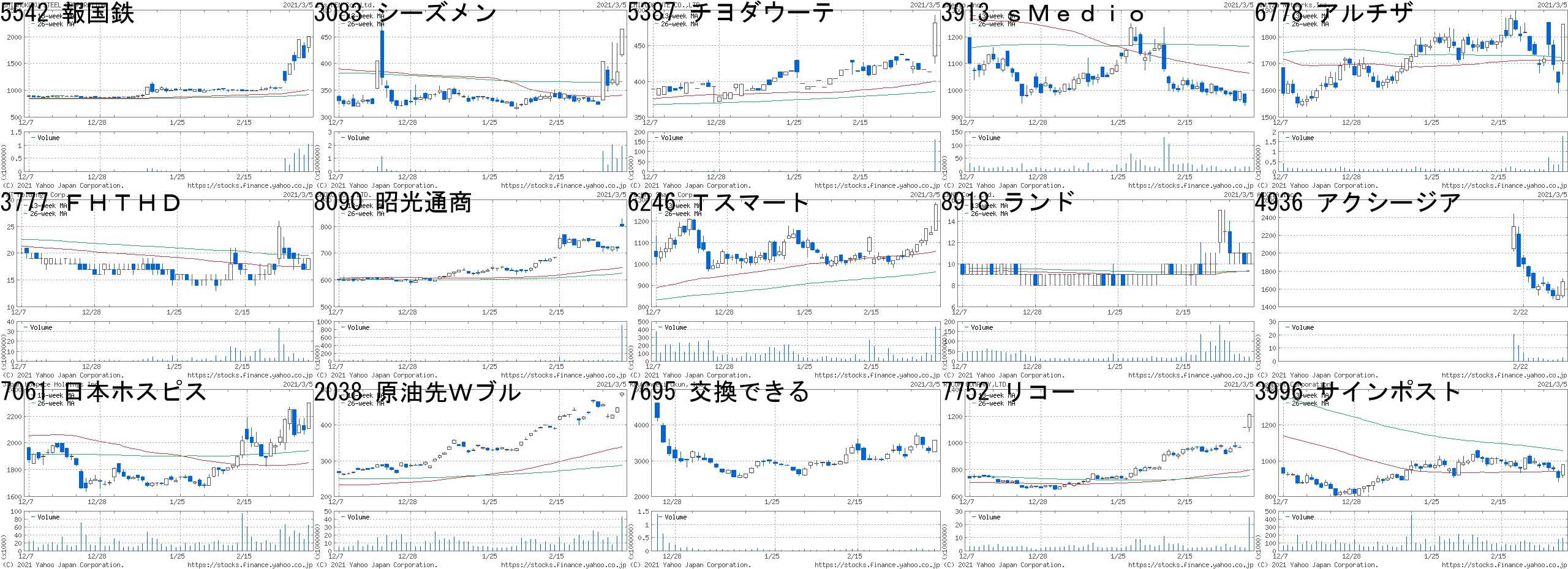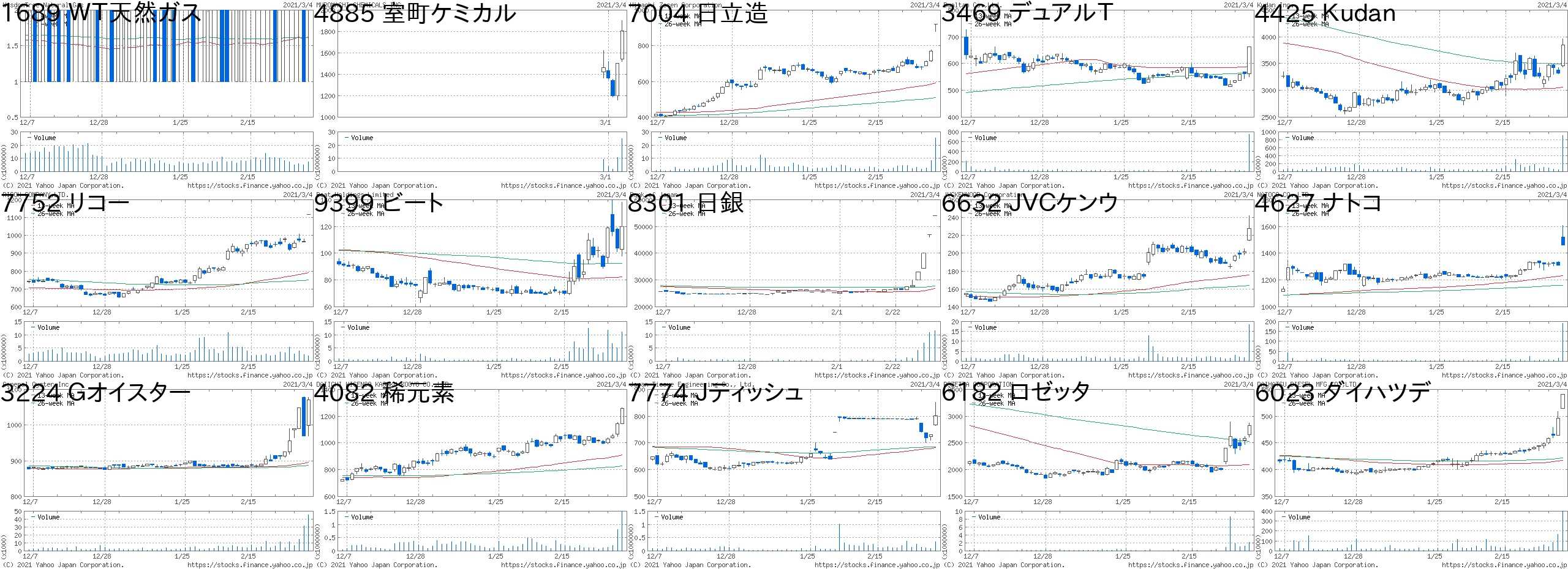 コード 銘柄名 市場 株価 前日比 前日比.1 出来高 PER PBR 利回り1689 WT天然ガス 東E 2 1 +100.00% 7504600 - - -4885 室町ケミカル JQ 1803 303 +20.20% 24920100 30.7 18.82 0.837004 日立造 東1 920 150 +19.48% 25166300 34.5 1.31 1.33469 デュアルT 東2 663 100 +17.76% 753600 11.8 1.18 1.734425 Kudan 東M 3850 525 +15.79% 907000 - 10.86 -7752 リコー 東1 1117 150 +15.51% 2164900 - 0.9 1.349399 ビート 東2 120 16 +15.38% 11012368 - - -8301 日銀 JQ 54000 +7,000 +14.89% 11600 - - -6632 JVCケンウ 東1 228 26 +12.87% 18317600 - 0.65 2.194627 ナトコ JQ 1463 153 +11.68% 191300 10 0.57 3.013224 Gオイスター 東M 1071 102 +10.53% 45700 - 21.58 -4082 稀元素 東1 1259 114 +9.96% 1472100 38.2 1.05 1.277774 Jティッシュ JG 802 72 +9.86% 349300 - 4.51 -6182 ロゼッタ 東M 2826 243 +9.41% 2097600 - 11.06 -6023 ダイハツデ 東2 541 45 +9.07% 397000 - 0.43 2.77コード 銘柄名 市場 株価 前日比 前日比.1 出来高 PER PBR 利回り3814 アルファクス JG 845 -180 -17.56% 274500 8.1 50.78 -5542 報国鉄 JQ 1612 -338 -17.33% 631800 26.9 1.27 1.866628 オンキヨーH JQ 16 -3 -15.79% 43311600 - - -3439 三ツ知 JQ 2103 -281 -11.79% 3900 25 0.66 1.197078 INC 東M 4490 -590 -11.61% 529500 - 8.98 -3777 FHTHD JG 17 -2 -10.53% 3093500 - 28.33 -7254 ユニバンス 東2 347 -40 -10.34% 1673400 - 0.5 0.583474 G-FAC 東M 509 -57 -10.07% 76000 471 2.63 -9318 アジア開発 東2 18 -2 -10.00% 54174800 - 6.36 -4174 アピリッツ JQ 4825 -505 -9.47% 809000 58 4.07 -3189 ANAP JQ 418 -42 -9.13% 110300 23.3 1.42 0.966620 宮越HD 東1 1000 -100 -9.09% 589100 51.6 1.82 -8918 ランド 東1 10 -1 -9.09% 20086300 - 2.03 -3926 オープンドア 東1 2077 -205 -8.98% 573900 - 11.46 -5713 住友鉱 東1 4816 -474 -8.96% 4146600 17 1.26 2.08にほんブログ村