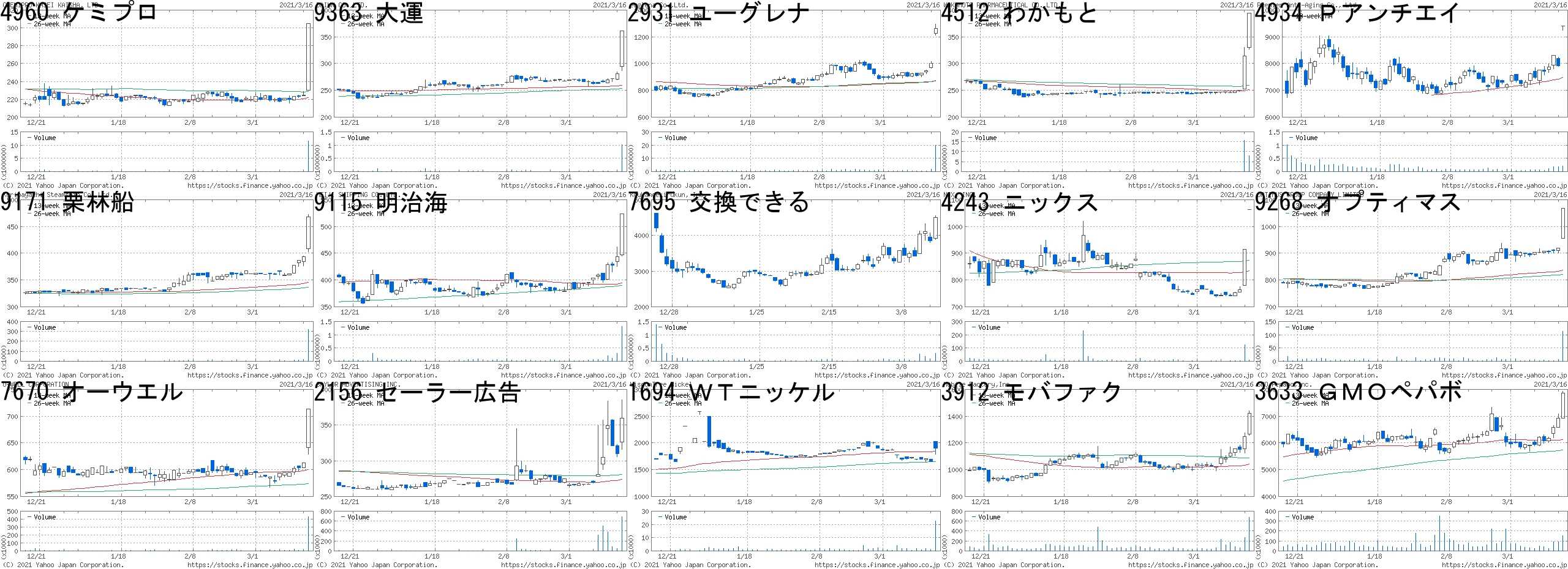 コード,銘柄名,市場,株価,前日比,前日比.1,出来高,PER,PBR,利回り4960,ケミプロ,東2,305,+80,+35.56%,11588800,100,1.12,0.669363,大運,東2,361,+80,+28.47%,1018700,21.4,0.83,0.832931,ユーグレナ,東1,1264,+264,+26.40%,20029900,-,13.35,-4512,わかもと,東1,394,+80,+25.48%,8004100,-,1.21,-4934,Pアンチエイ,東M,9410,"+1,500",+18.96%,212900,30.3,14.43,-9171,栗林船,東2,468,+74,+18.78%,320100,29.6,0.31,1.289115,明治海,東1,524,+80,+18.02%,1321700,21.6,0.93,1.347695,交換できる,東M,4500,+650,+16.88%,307800,53.0,15.47,-4243,ニックス,JQ,1064,+150,+16.41%,10400,31.3,0.71,0.759268,オプティマス,東2,1069,+150,+16.32%,112300,9.4,0.45,3.187670,オーウエル,東2,713,+100,+16.31%,431200,24.6,0.35,1.682156,セーラー広告,JQ,360,+50,+16.13%,690400,-,0.79,1.111694,WTニッケル,東E,1900,+249,+15.08%,22690,-,-,-3912,モバファク,東1,1421,+174,+13.95%,675300,-,4.45,-3633,GMOペパボ,東1,7870,+940,+13.56%,151600,52.2,16.51,1.03コード,銘柄名,市場,株価,前日比,前日比.1,出来高,PER,PBR,利回り3491,GAテクノ,東M,1974,-477,-19.46%,1716700,68.0,3.66,-9318,アジア開発,東2,15,-2,-11.76%,71112600,-,5.30,-3133,海帆,東M,436,-55,-11.20%,69900,-,-,-5987,オーネックス,JQ,1257,-137,-9.83%,18100,-,0.39,1.591436,フィット,東M,1277,-129,-9.17%,92300,31.3,1.25,0.781840,土屋HD,東2,169,-15,-8.15%,1104900,32.5,0.38,2.963195,ジェネパ,東M,550,-45,-7.56%,162000,-,2.70,-8698,マネックスG,東1,881,-72,-7.56%,36907500,-,2.85,-2901,石垣食,JQ,139,-11,-7.33%,801800,-,-,-7527,システムソフ,東1,154,-12,-7.23%,4443700,62.9,3.11,1.302315,CAICA,JQ,52,-4,-7.14%,27003000,226,3.64,-3917,アイリッジ,東M,890,-67,-7.00%,167000,597,2.40,-3441,山王,JQ,1493,-104,-6.51%,216300,7.8,1.48,0.334446,リンクユー,東1,1019,-67,-6.17%,1781300,177,7.01,-3995,スキヤキ,東M,611,-40,-6.14%,295200,187,6.15,-にほんブログ村