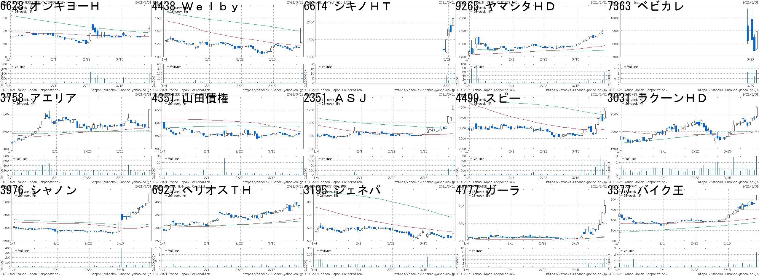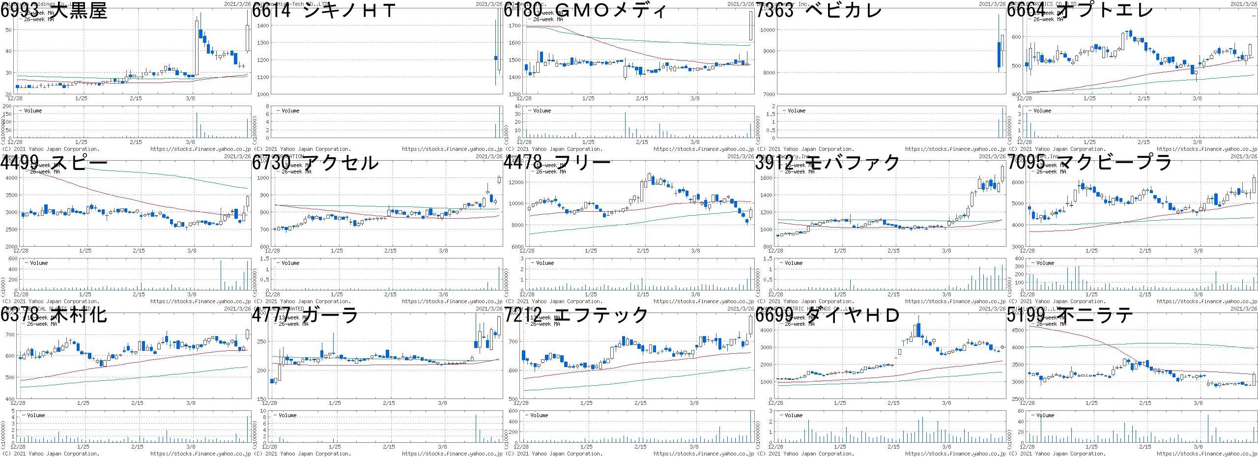 コード,銘柄名,市場,株価,前日比,前日比.1,出来高,PER,PBR,利回り6993,大黒屋,東2,52,+19,+57.58%,116769100,-,4.63,-6614,シキノHT,JQ,1499,+300,+25.02%,7726600,46.4,8.26,-6180,GMOメディ,東M,1780,+300,+20.27%,17900,-,1.62,-7363,ベビカレ,東M,9750,"+1,500",+18.18%,1889200,79.9,23.4,-6664,オプトエレ,JQ,673,+100,+17.45%,108000,16.4,0.92,-4499,スピー,JQ,3460,+484,+16.26%,543700,66.5,8.43,-6730,アクセル,東1,1003,+136,+15.69%,1084400,18.5,1.12,2.694478,フリー,東M,9430,"+1,180",+14.30%,2180000,-,36.46,-3912,モバファク,東1,1732,+198,+12.91%,1186700,-,5.42,-7095,マクビープラ,東M,6200,+700,+12.73%,162800,46.4,11.53,-6378,木村化,東1,720,+80,+12.50%,4074100,19.8,1.17,1.114777,ガーラ,JQ,293,+32,+12.26%,1021100,-,27.23,-7212,エフテック,東1,788,+85,+12.09%,587400,-,0.39,1.026699,ダイヤHD,東1,3070,+321,+11.68%,566100,-,3.97,0.165199,不二ラテ,JQ,3220,+332,+11.50%,29000,31.0,1.3,1.55コード,銘柄名,市場,株価,前日比,前日比.1,出来高,PER,PBR,利回り1689,WT天然ガス,東E,1,-1,-50.00%,5525100,-,-,-7519,五洋インテ,JQ,194,-23,-10.60%,1878600,-,16.51,-3054,ハイパー,東1,574,-65,-10.17%,553400,18.4,1.66,1.578918,ランド,東1,9,-1,-10.00%,41528400,-,1.83,-4179,ジーネクスト,東M,2349,-251,-9.65%,557800,53.3,42.62,-2035,日経VI,東EN,280,-28,-9.09%,5048716,-,-,-9827,リリカラ,JQ,212,-18,-7.83%,4265500,14.5,0.41,2.128254,さいか屋,東2,362,-28,-7.18%,169900,-,1.89,-3540,Ciメディカ,JQ,7360,-520,-6.60%,71900,24.5,5.35,-7057,エヌシーエヌ,JQ,1501,-97,-6.07%,10300,23.7,2.55,1.734465,ニイタカ,東1,2708,-165,-5.74%,193300,12.3,1.33,0.963408,サカイオーベ,東1,2835,-151,-5.06%,277900,14.6,0.77,1.762437,シンワワイズ,JQ,499,-26,-4.95%,3007500,-,2.12,-2424,ブラス,東1,619,-32,-4.92%,97800,9.3,1.54,-4175,コリー,東M,5680,-290,-4.86%,242500,21.9,14.05,-にほんブログ村