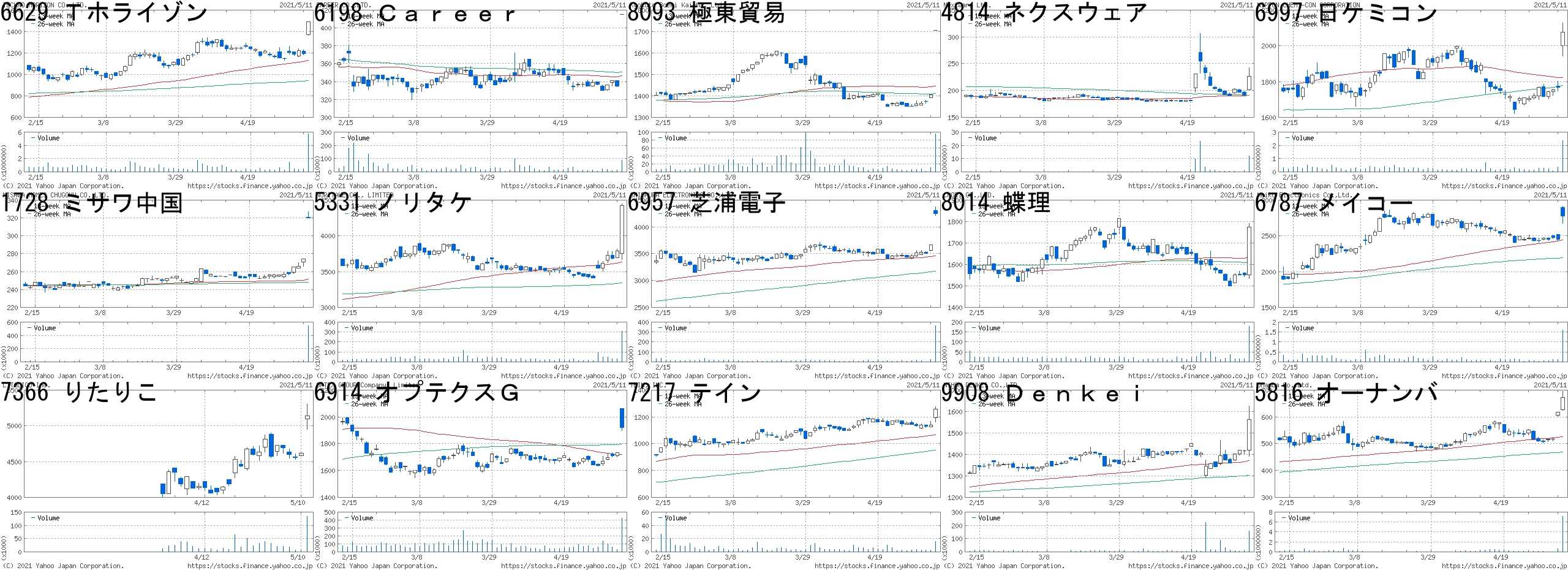 コード,銘柄名,市場,株価,前日比,前日比.1,出来高,PER,PBR,利回り6629,Tホライゾン,JQ,1492,300,+25.17%,5684100,8.7,2.15,1.346198,Career,東M,415,80,+23.88%,86400,351.0,2.92,-8093,極東貿易,東1,1707,300,+21.32%,95200,12.3,0.47,8.494814,ネクスウェア,JQ,227,35,+18.23%,12151600,120.0,4.02,-6997,日ケミコン,東1,2077,309,+17.48%,2341300,10.0,0.82,-1728,ミサワ中国,JQ,320,46,+16.79%,546500,20.5,0.61,-5331,ノリタケ,東1,4420,635,+16.78%,305200,9.8,0.58,2.496957,芝浦電子,JQ,4250,580,+15.80%,362700,12.4,1.29,2.358014,蝶理,東1,1773,221,+14.24%,178700,6.4,0.74,4.746787,メイコー,JQ,2775,324,+13.22%,1594500,9.6,1.79,1.447366,りたりこ,東1,5140,520,+11.26%,133800,76.0,20.08,-6914,オプテクスG,東1,1921,189,+10.91%,424600,31.6,2.07,1.567217,テイン,JQ,1259,121,+10.63%,15600,10.6,1.6,1.999908,Denkei,JQ,1564,146,+10.30%,156600,7.2,0.59,4.805816,オーナンバ,東2,673,56,+9.08%,7098100,11.7,0.5,1.63コード,銘柄名,市場,株価,前日比,前日比.1,出来高,PER,PBR,利回り1689,WT天然ガス,東E,1,-1,-50.00%,8398500,-,-,-4366,ダイトーケミ,東2,861,-174,-16.81%,1238700,14.2,0.72,1.167897,ホクシン,東1,210,-39,-15.66%,9574800,198,1.13,-6628,オンキヨーH,JQ,6,-1,-14.29%,4511000,-,-,-3639,ボルテージ,東1,557,-91,-14.04%,694900,-,1.38,-9090,丸和運機関,東1,1682,-247,-12.80%,1581100,36.1,8.22,1.134387,ZUU,東M,2091,-299,-12.51%,95200,-,6.71,-7343,Bマインド,東M,1402,-197,-12.32%,3086300,26.8,3.37,0.366698,ヴィスコ,東2,1078,-143,-11.71%,288900,15.3,2.35,-5301,東海カ,東1,1701,-215,-11.22%,4971500,40.7,1.71,1.767045,ツクイSTF,JQ,1610,-203,-11.20%,11100,184,1.24,1.866703,OKI,東1,1066,-131,-10.94%,1433800,26.4,0.82,2.816614,シキノHT,JQ,1714,-191,-10.03%,284000,55.3,9.85,-4308,Jストリーム,東M,4235,-465,-9.89%,640100,33.3,5.94,-3264,アスコット,JQ,219,-24,-9.88%,823400,-,1.17,-にほんブログ村
