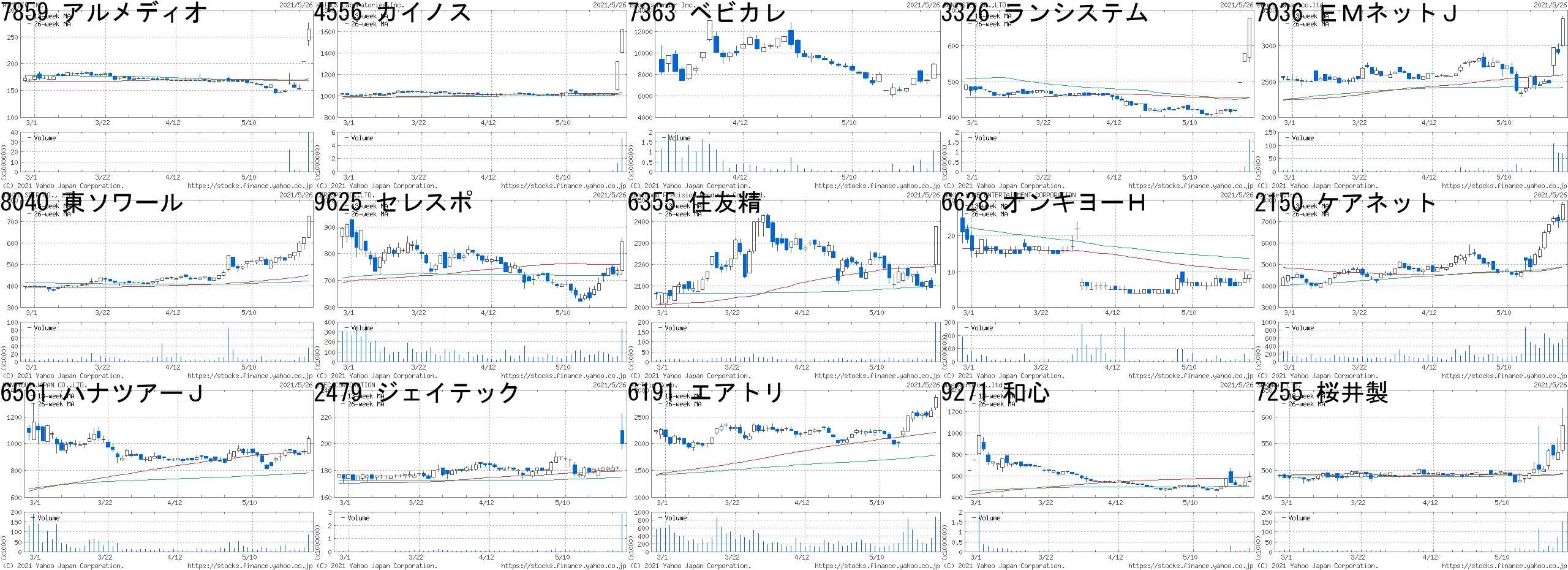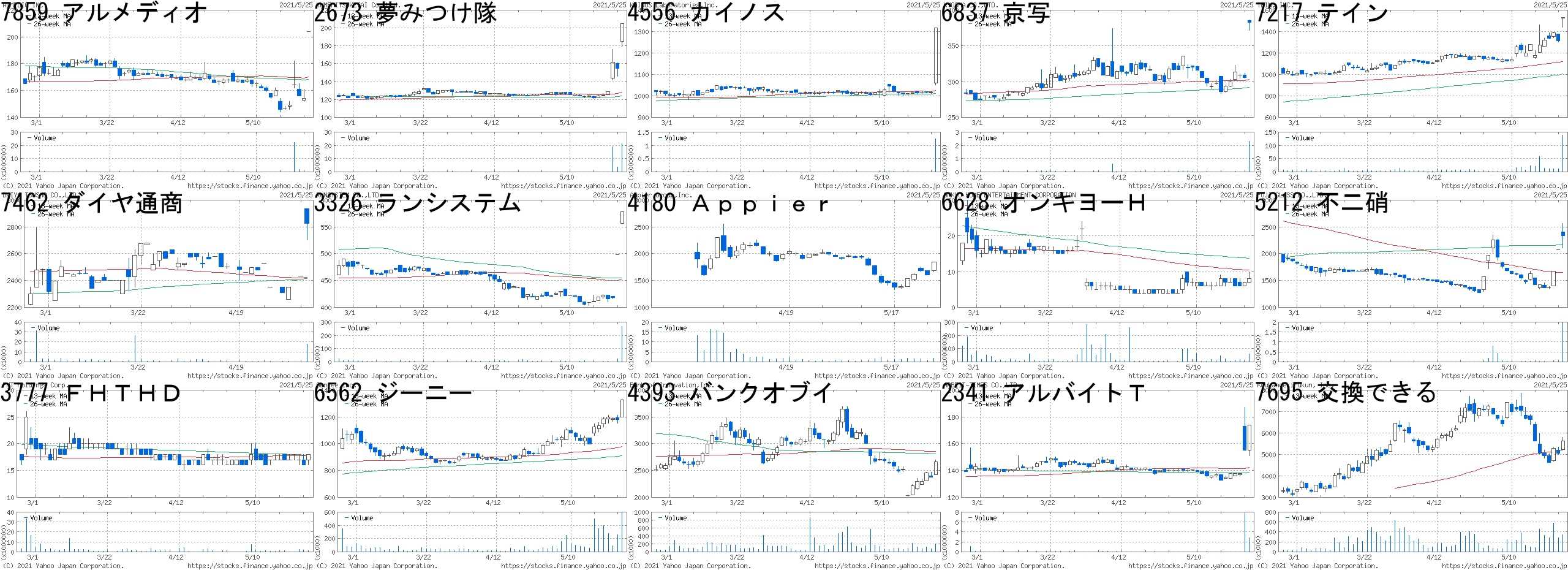 コード,銘柄名,市場,株価,前日比,前日比.1,出来高,PER,PBR,利回り7859,アルメディオ,東2,265,+61,+29.90%,39418700,-,1.56,-4556,カイノス,JQ,1618,+300,+22.76%,5040900,16.6,1.42,0.937363,ベビカレ,東M,8990,"+1,490",+19.87%,1070700,76.8,11.38,-3326,ランシステム,JQ,678,+100,+17.30%,1628600,-,14.46,-7036,EMネットJ,東M,3380,+470,+16.15%,68800,21.9,4.97,1.248040,東ソワール,東2,725,+100,+16.00%,35100,-,0.32,-9625,セレスポ,JQ,844,+106,+14.36%,324700,-,1.03,-6355,住友精,東1,2377,+287,+13.73%,196700,38.1,0.48,1.056628,オンキヨーH,JQ,9,+1,+12.50%,16679100,-,-,-2150,ケアネット,東M,7810,+770,+10.94%,564100,57.9,22.53,0.106561,ハナツアーJ,東M,1039,+100,+10.65%,85500,-,9.86,-2479,ジェイテック,JG,200,+18,+9.89%,2819000,263,1.78,0.506191,エアトリ,東1,2864,+253,+9.69%,880000,82.8,13.50,-9271,和心,東M,592,+52,+9.63%,172000,-,-,-7255,桜井製,JQ,584,+51,+9.57%,153600,18.7,0.44,2.57コード,銘柄名,市場,株価,前日比,前日比.1,出来高,PER,PBR,利回り5212,不二硝,JQ,2003,-330,-14.14%,665300,68.6,1.37,0.373540,Ciメディカ,JQ,6200,-750,-10.79%,161900,20.7,4.41,-6198,Career,東M,623,-67,-9.71%,1618000,527,4.53,-7187,ジェイリース,東1,1159,-110,-8.67%,1240000,14.6,8.5,1.736837,京写,JQ,353,-30,-7.83%,990500,42.2,0.81,1.425998,アドバネクス,東1,1285,-89,-6.48%,4200,52.7,0.84,0.783777,FHTHD,JG,17,-1,-5.56%,1351400,-,6.69,-9028,ゼロ,東2,1317,-77,-5.52%,15700,5.7,0.79,4.319519,レノバ,東1,3485,-195,-5.30%,2055900,53.1,17.77,-2341,アルバイトT,JQ,165,-9,-5.17%,1609600,257,1.01,1.826550,Fringe,東M,411,-22,-5.08%,1052700,-,17.29,-4764,NexusB,JG,151,-8,-5.03%,4127200,3.5,0.26,-3053,ペッパー,東1,323,-17,-5.00%,847800,222,9.04,-4169,エネチェンジ,東M,2150,-113,-4.99%,358400,-,33.5,-5301,東海カ,東1,1640,-86,-4.98%,2711000,39.3,1.65,1.83にほんブログ村