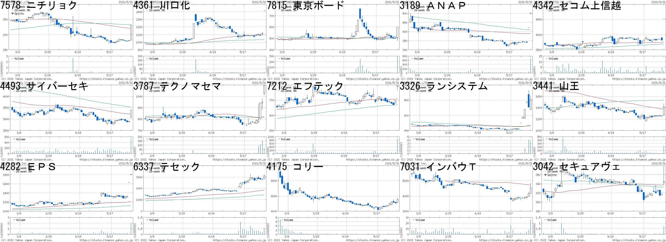 コード,銘柄名,市場,株価,前日比,前日比.1,出来高,PER,PBR,利回り1689,WT天然ガス,東E,2,+1,+100.00%,7933500,-,-,-6628,オンキヨーH,JQ,8,+2,+33.33%,48258900,-,-,-3465,ケイアイ不,東1,4335,+700,+19.26%,585700,6.2,2.51,4.614193,ファブリカ,JQ,6340,"+1,000",+18.73%,6300,24.9,17.70,0.795185,フコク,東1,930,+143,+18.17%,669200,7.0,0.51,4.306835,アライドHD,東2,120,+18,+17.65%,16136100,-,2.30,-4449,ギフティ,東1,3490,+500,+16.72%,600900,134,18.43,-3975,AOITYO,東1,710,+100,+16.39%,39400,23.8,0.82,-6899,ASTI,東2,2301,+320,+16.15%,126700,5.5,0.40,-2586,フルッタ,東M,287,+39,+15.73%,18237500,-,2.97,-4933,Ine,東M,5190,+700,+15.59%,386600,48.7,5.99,-6293,日精樹脂,東1,1122,+149,+15.31%,319100,8.9,0.65,2.677092,FFJ,東M,5370,+705,+15.11%,420800,76.1,10.30,-6652,IDEC,東1,1947,+252,+14.87%,277300,14.6,1.36,2.576993,大黒屋,東2,47,+6,+14.63%,39691800,11.4,4.70,-コード,銘柄名,市場,株価,前日比,前日比.1,出来高,PER,PBR,利回り7044,ピアラ,東1,1130,-400,-26.14%,337600,17.1,3.68,0.444060,rakumo,東M,1519,-488,-24.31%,578300,47.1,10.98,-3674,オークファン,東M,1208,-376,-23.74%,871400,15.6,1.94,-4011,ヘッドウォ,東M,10890,-3000,-21.60%,46600,73.9,13.09,-4170,カイゼン,東M,1499,-400,-21.06%,912500,148,7.13,-3135,マーケットE,東1,1129,-300,-20.99%,7200,-,4.06,-7066,ピアズ,東M,1551,-400,-20.50%,96100,50.9,1.6,-9450,ファイバーG,東1,1183,-300,-20.23%,909700,25.7,6.92,-4448,チャットW,東M,916,-230,-20.07%,1205100,-,18.5,-4393,バンクオブイ,東M,2030,-500,-19.76%,88400,-,7.3,-6541,グレイス,東1,1963,-479,-19.62%,2154900,69.5,17.4,-3641,パピレス,JQ,1648,-384,-18.90%,188000,21.5,1.81,0.617363,ベビカレ,東M,6500,-1500,-18.75%,4800,54.9,8.13,-4020,ビートレンド,東M,3040,-700,-18.72%,41100,32.2,5.23,-2435,シダー,JQ,231,-52,-18.37%,681000,13.5,1.65,1.73にほんブログ村