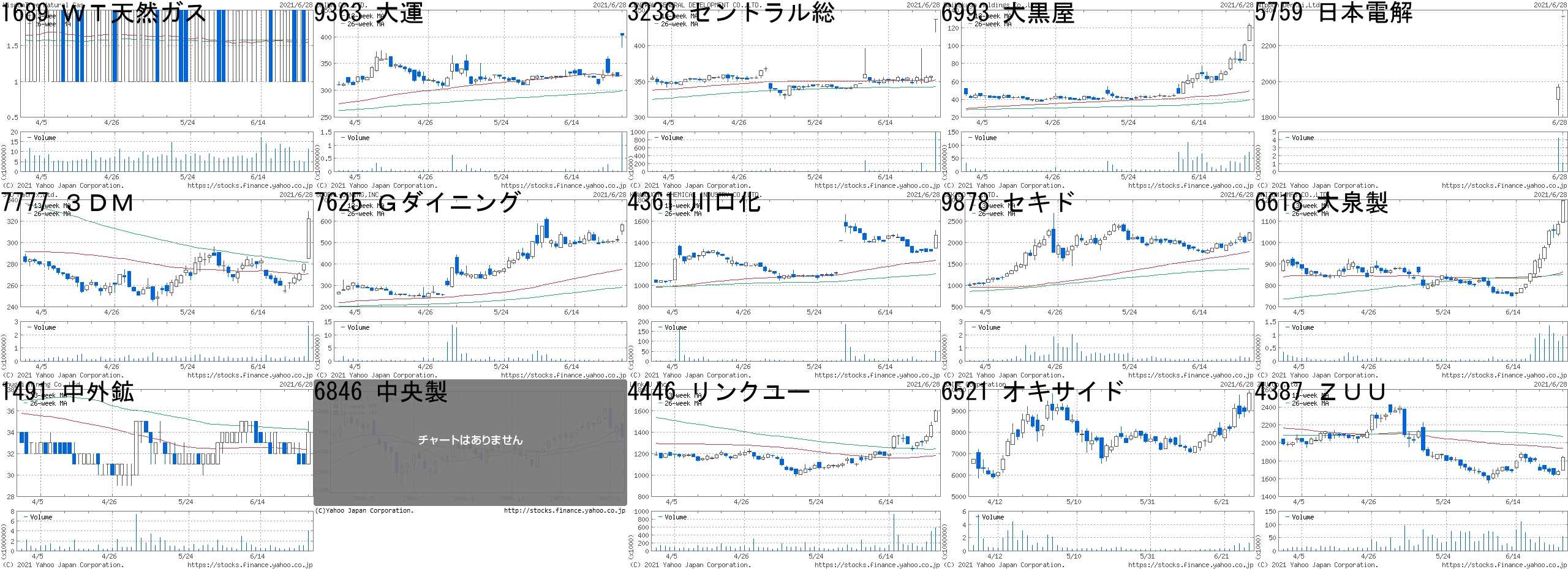 コード,銘柄名,市場,株価,前日比,前日比.1,出来高,PER,PBR,利回り1689,WT天然ガス,東E,2,1,+100.00%,11483600,-,-,-9363,大運,東2,403,77,+23.62%,1402600,25.0,0.87,1.493238,セントラル総,東2,437,80,+22.41%,990700,6.1,0.47,2.756993,大黒屋,東2,123,22,+21.78%,73794600,29.7,12.31,-5759,日本電解,東M,2367,400,+20.34%,1170100,19.7,3.47,-7777,3DM,JG,322,42,+15.00%,2668400,-,11.98,-7625,Gダイニング,東2,582,67,+13.01%,885200,-,2.73,-4361,川口化,東2,1470,148,+11.20%,51900,6.9,0.88,2.049878,セキド,東2,2224,210,+10.43%,272200,38.2,8.92,-6618,大泉製,東M,1196,109,+10.03%,956400,42.7,3.74,0.671491,中外鉱,東2,34,3,+9.68%,4072400,242,1.50,-6846,中央製,名2,1451,126,+9.51%,5500,18.7,0.49,1.384446,リンクユー,東1,1602,139,+9.50%,582600,283,10.80,-6521,オキサイド,東M,9820,840,+9.35%,1161800,130,30.64,-4387,ZUU,東M,1838,156,+9.27%,54400,188,6.62,-コード,銘柄名,市場,株価,前日比,前日比.1,出来高,PER,PBR,利回り7519,五洋インテ,JQ,60,-30,-33.33%,95000,-,5.11,-6628,オンキヨーH,JQ,5,-1,-16.67%,38852500,-,-,-4068,ベイシス,東M,5030,-1000,-16.58%,184800,44.4,10.44,-2484,出前館,JQ,1550,-227,-12.77%,2465800,-,9.29,-8256,プロルート,JQ,231,-28,-10.81%,8159600,65.6,6.81,-2778,パレモ・HD,東2,192,-22,-10.28%,345600,-,1.55,-4588,オンコリス,東M,1702,-145,-7.85%,1494000,-,6.19,-6535,アイモバイル,東1,1670,-130,-7.22%,2910000,18.3,2.48,5.996575,ヒューマンA,東M,763,-55,-6.72%,110500,38.2,2.35,0.793528,プロスペクト,東2,30,-2,-6.25%,3734300,44.1,0.83,-6663,太洋工業,JQ,564,-36,-6.00%,194400,62.8,1.35,0.532586,フルッタ,東M,224,-13,-5.49%,2220600,-,2.61,-1757,中小企業HD,東2,71,-4,-5.33%,6838200,-,14.03,-8783,GFA,JQ,180,-10,-5.26%,210900,145,65.93,-7096,ステムセル研,東M,3920,-210,-5.08%,1174000,147,15.19,-にほんブログ村