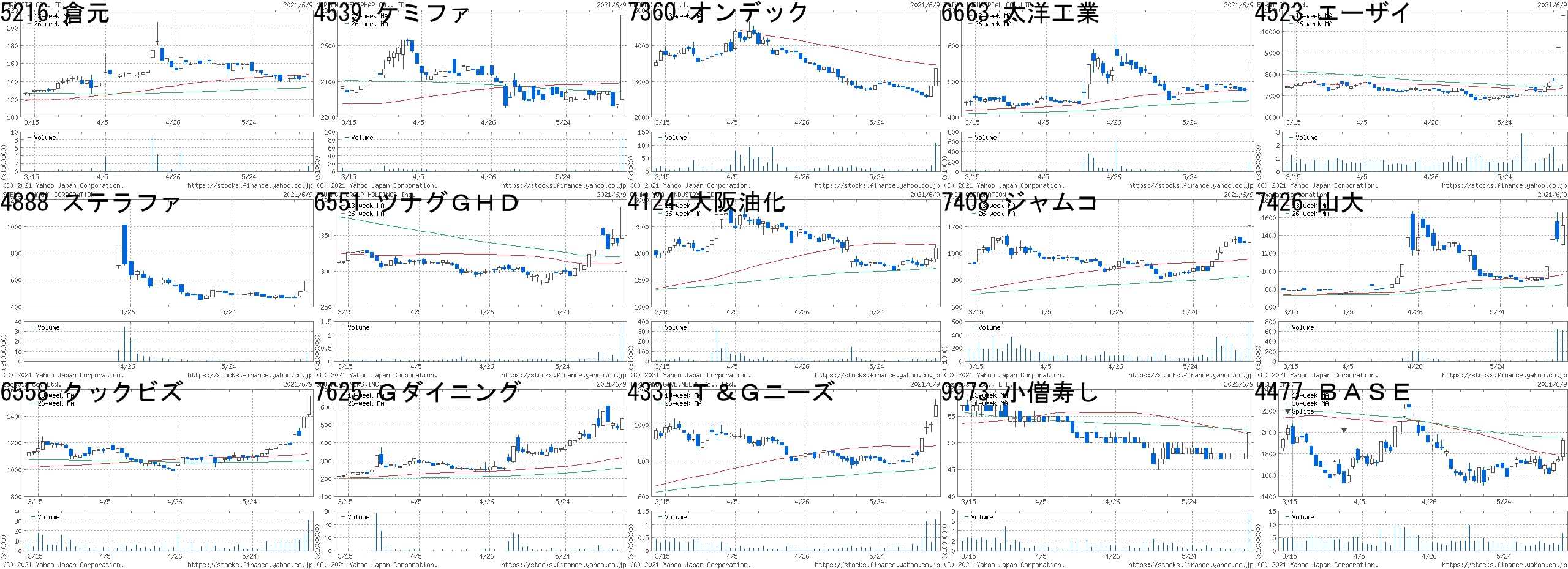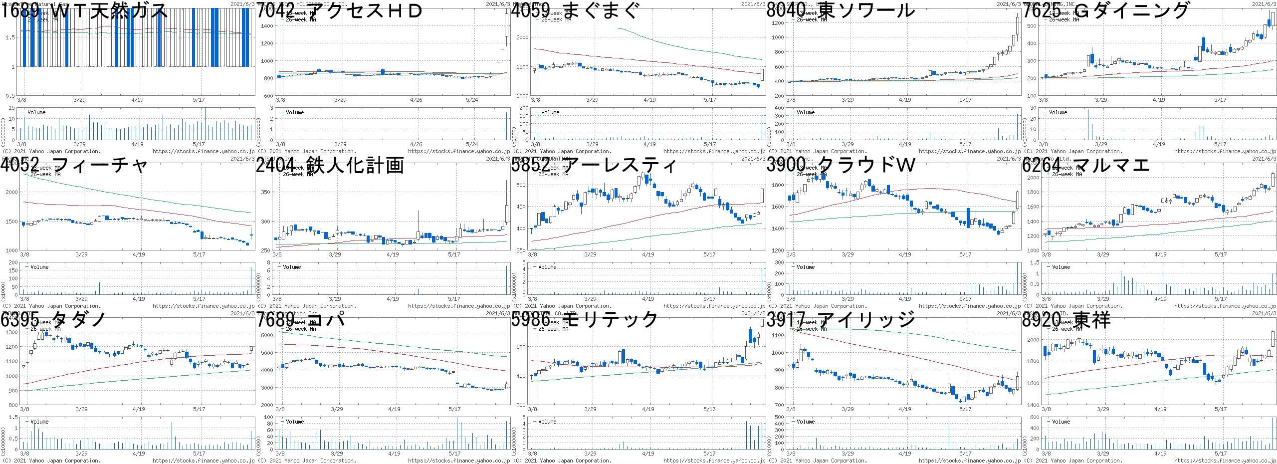 コード,銘柄名,市場,株価,前日比,前日比.1,出来高,PER,PBR,利回り1689,WT天然ガス,東E,2,1,+100.00%,7780200,-,-,-2762,三光Mフーズ,東2,344,80,+30.30%,1193500,-,10.69,-7426,山大,JQ,1353,300,+28.49%,7900,100,0.43,1.859812,テーオーHD,JQ,438,80,+22.35%,1073800,-,-,-7896,セブン工業,東2,602,100,+19.92%,204800,15.4,0.40,2.337815,東京ボード,東2,625,100,+19.05%,193200,-,0.41,-4582,シンバイオ,JG,2250,290,+14.80%,19629000,75.1,22.45,-6580,ライトアップ,東M,2940,331,+12.69%,345000,30.1,7.49,-7827,オービス,JQ,1161,115,+10.99%,98700,8.6,0.55,1.726946,日本アビオ,東2,4350,430,+10.97%,179100,9.4,1.19,-7565,万世電機,東2,3360,330,+10.89%,2300,-,0.66,-4493,サイバーセキ,東M,3360,325,+10.71%,317400,175,43.37,-7898,ウッドワン,東1,1392,127,+10.04%,556400,21.6,0.32,1.727320,リビング保証,東M,2498,223,+9.80%,62800,28.3,14.65,0.203788,GMO-GS,東1,5020,425,+9.25%,300500,74.6,8.40,0.67コード,銘柄名,市場,株価,前日比,前日比.1,出来高,PER,PBR,利回り4196,ネオマーケ,JQ,2921,-694,-19.20%,402500,47.4,19.33,-8040,東ソワール,東2,1197,-248,-17.16%,209400,-,0.53,-6343,フリージア,東2,151,-26,-14.69%,13957700,-,0.88,-4177,i-plug,東M,5100,-870,-14.57%,87900,94.6,17.11,-4059,まぐまぐ,JQ,1460,-190,-11.52%,103800,45.0,3.01,0.487042,アクセスHD,JQ,1459,-157,-9.72%,530900,-,2.84,-3647,ジー・スリー,東2,597,-62,-9.41%,3770700,62.9,4.39,-7279,ハイレックス,東2,1778,-175,-8.96%,408400,9.7,0.41,1.914171,グローバルI,JQ,1828,-179,-8.92%,49300,16.3,3.19,1.313172,ティーライフ,東1,1435,-139,-8.83%,194600,10.9,1.15,3.078918,ランド,東1,11,-1,-8.33%,13330500,5.3,3.43,0.916461,日ピス,東1,1392,-125,-8.24%,2683600,8.2,0.37,4.319672,東競馬,東1,4780,-380,-7.36%,542300,15.6,1.91,1.265411,JFE,東1,1340,-104,-7.20%,9754600,5.9,0.46,-5471,大同特鋼,東1,5290,-410,-7.19%,294600,9.6,0.74,2.84にほんブログ村