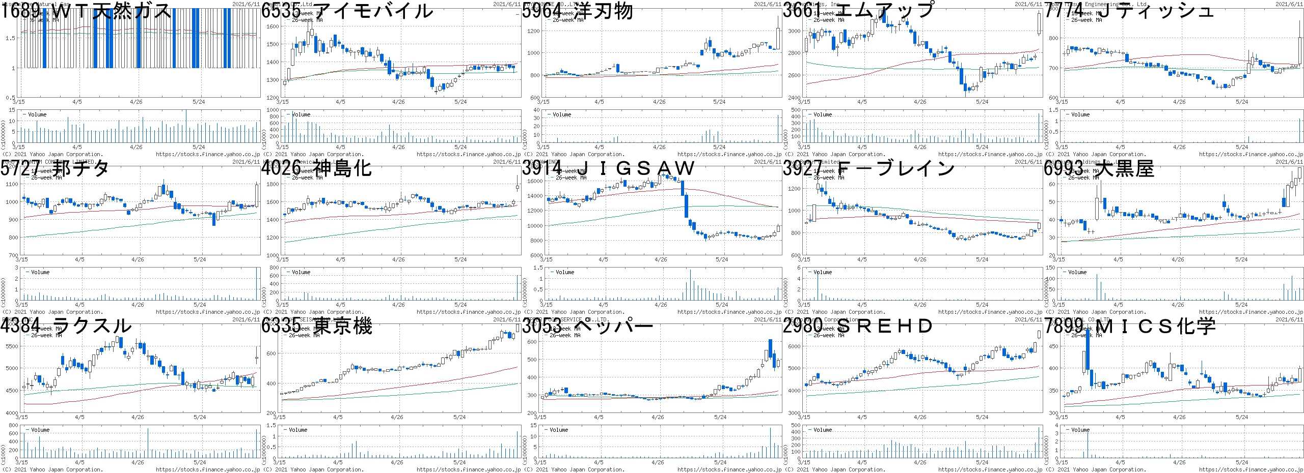 コード,銘柄名,市場,株価,前日比,前日比.1,出来高,PER,PBR,利回り1689,WT天然ガス,東E,2,1,+100.00%,9157200,-,-,-6535,アイモバイル,東1,1666,300,+21.96%,148600,18.2,2.48,6.005964,洋刃物,東2,1220,189,+18.33%,33200,7.0,0.90,1.643661,エムアップ,東1,3155,383,+13.82%,436800,34.3,6.70,0.737774,Jティッシュ,JG,803,94,+13.26%,1081800,-,4.55,-5727,邦チタ,東1,1093,120,+12.33%,2955400,32.4,1.75,1.104026,神島化,東2,1779,174,+10.84%,601900,14.8,1.92,2.023914,JIGSAW,東M,9910,900,+9.99%,573200,-,39.11,-3927,F-ブレイン,東M,887,78,+9.64%,197300,-,3.87,-6993,大黒屋,東2,69,6,+9.52%,54887600,16.7,6.91,-4384,ラクスル,東1,5240,435,+9.05%,692800,1497,19.71,-6335,東京機,東1,795,65,+8.90%,1191500,22.4,0.89,-3053,ペッパー,東1,495,40,+8.79%,5881200,341,13.85,-2980,SREHD,東1,6670,520,+8.46%,465200,123,13.20,-7899,MICS化学,JQ,399,28,+7.55%,108800,63.5,0.67,2.01コード,銘柄名,市場,株価,前日比,前日比.1,出来高,PER,PBR,利回り7868,広済堂,東1,835,-150,-15.23%,2124700,12.2,0.66,-4198,テンダ,JQ,4830,-670,-12.18%,1220400,54.0,10.87,-6558,クックビズ,東M,1282,-148,-10.35%,43200,-,4.44,-4936,アクシージア,東M,1705,-195,-10.26%,1434000,51.7,6.34,-7408,ジャムコ,東1,1167,-118,-9.18%,584700,-,1.93,-7426,山大,JQ,1225,-123,-9.12%,261800,90.7,0.39,2.046184,鎌倉新書,東1,1093,-107,-8.92%,933200,84.8,12.56,-3647,ジー・スリー,東2,516,-48,-8.51%,2375800,54.4,3.80,-6069,トレンダ,東M,664,-61,-8.41%,1649400,17.5,1.91,2.413031,ラクーンHD,東1,2418,-217,-8.24%,1826100,55.3,10.11,0.833906,ALBERT,東M,5800,-470,-7.50%,244700,96.6,7.42,-8040,東ソワール,東2,1390,-110,-7.33%,109300,-,0.62,-6236,NCHD,東1,1144,-82,-6.69%,114200,14.6,0.79,1.318836,RISE,JQ,28,-2,-6.67%,337200,-,-,-7042,アクセスHD,JQ,1187,-81,-6.39%,144900,-,2.31,-にほんブログ村