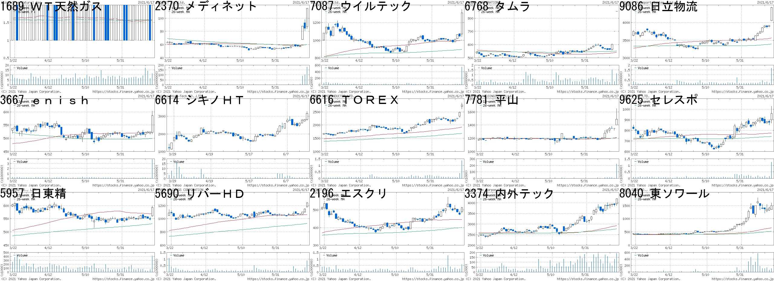 コード,銘柄名,市場,株価,前日比,前日比.1,出来高,PER,PBR,利回り2370,メディネット,東M,88,+30,+51.72%,88087100,-,2.93,-4880,セルソース,東M,16500,"+3,000",+22.22%,638000,215,44.01,-3647,ジー・スリー,東2,555,+80,+16.84%,3539000,58.5,4.08,-4662,フォーカス,東1,1050,+150,+16.67%,45500,15.4,1.43,2.389318,アジア開発,東2,8,+1,+14.29%,3244700,-,3.69,-4446,リンクユー,東1,1360,+165,+13.81%,917900,240,9.16,-4531,有機薬,東1,341,+37,+12.17%,1660100,41.3,0.68,0.884444,インフォネ,東M,1400,+145,+11.55%,73600,42.7,3.04,-7095,マクビープラ,東M,7250,+740,+11.37%,437100,34.1,12.29,-2351,ASJ,東M,1655,+158,+10.55%,286800,1003,4.51,0.122158,フロンテオ,東M,936,+85,+9.99%,3251300,104,8.2,0.327033,MSOL,東1,2281,+197,+9.45%,777200,64.7,21.06,-6125,岡本工,東2,4805,+390,+8.83%,132500,9.6,1.27,2.505964,洋刃物,東2,1584,+119,+8.12%,158600,9.1,1.17,1.266966,三井ハイテク,東1,5420,+400,+7.97%,2644500,35.4,3.94,0.50コード,銘柄名,市場,株価,前日比,前日比.1,出来高,PER,PBR,利回り4934,Pアンチエイ,東M,13640,-2260,-14.21%,2585600,43.9,17.13,-4666,パーク24,東1,2181,-294,-11.88%,4331500,-,16.98,-7814,日本創発G,JQ,341,-45,-11.66%,610500,21.6,1.46,2.934475,HENNGE,東M,4395,-545,-11.03%,1201700,369,42.81,-4175,コリー,東M,4690,-500,-9.63%,198700,18.8,4.2,-1436,フィット,東M,958,-92,-8.76%,64400,18.2,0.92,1.046993,大黒屋,東2,63,-6,-8.70%,34374000,15.2,6.31,-6236,NCHD,東1,1047,-97,-8.48%,71500,13.3,0.72,1.434355,ロングライフ,JQ,372,-33,-8.15%,219000,76.9,1.52,2.156557,gbHD,東M,1016,-90,-8.14%,14700,24.8,2.09,-9425,日本テレホン,JQ,454,-40,-8.10%,399300,22.1,2.21,-6192,HyAS&C,東M,156,-13,-7.69%,665500,-,9.71,-2776,新都HD,JQ,76,-6,-7.32%,985500,48.1,2.38,-3665,エニグモ,東1,1332,-103,-7.18%,1337900,24.4,5.99,-4933,Ine,東M,6350,-470,-6.89%,157500,60.3,7.41,-にほんブログ村