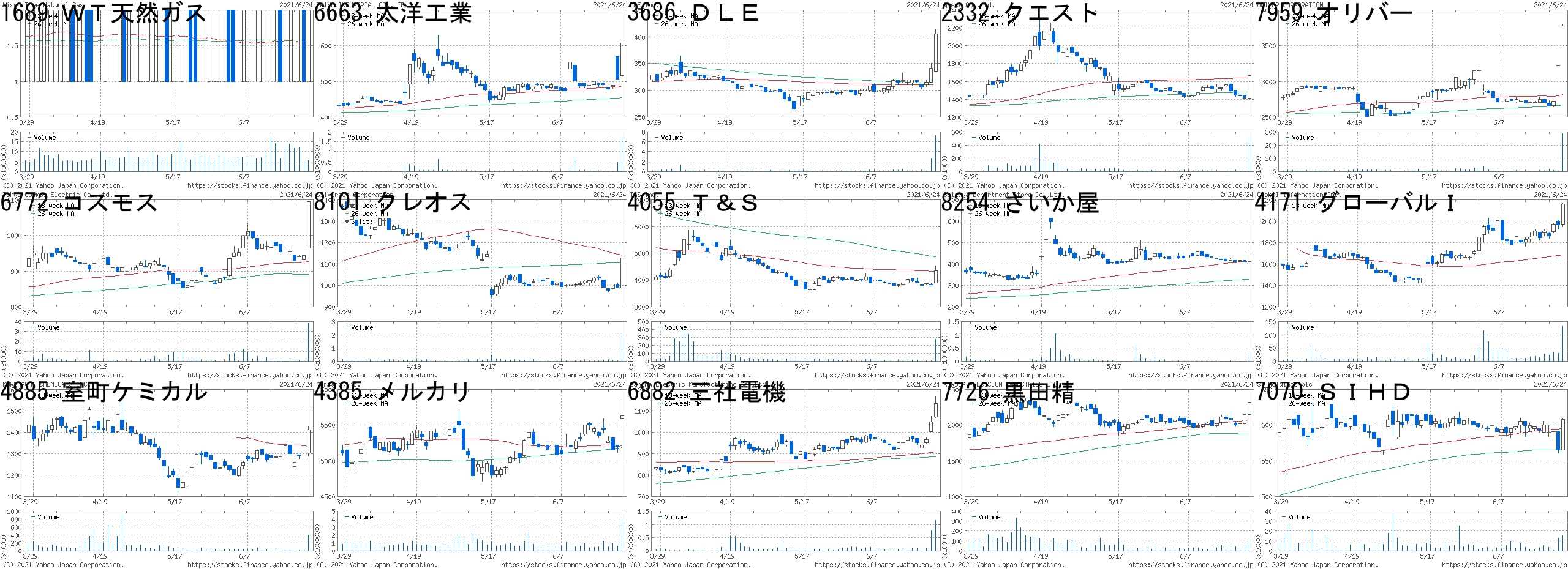 コード,銘柄名,市場,株価,前日比,前日比.1,出来高,PER,PBR,利回り1689,WT天然ガス,東E,2,1,+100.00%,5504500,-,-,-6663,太洋工業,JQ,607,100,+19.72%,1712300,67.6,1.45,0.493686,DLE,東1,405,64,+18.77%,7237700,-,5.09,-2332,クエスト,JQ,1667,256,+18.14%,515300,17.2,1.66,2.407959,オリバー,東1,3780,560,+17.39%,288100,29.8,1.33,0.396772,コスモス,東2,1094,150,+15.89%,38100,55.3,0.42,1.838101,クレオス,東1,1128,137,+13.82%,2089700,9.4,0.60,3.104055,T&S,東M,4340,515,+13.46%,276600,72.0,13.25,0.168254,さいか屋,東2,460,48,+11.65%,310000,-,5.63,-4171,グローバルI,JQ,2159,196,+9.98%,131200,19.2,3.77,1.114885,室町ケミカル,JQ,1410,116,+8.96%,402000,25.6,4.69,1.064385,メルカリ,東M,5630,440,+8.48%,4252300,177,24.36,-6882,三社電機,東2,1133,85,+8.11%,1159900,28.9,0.82,-7726,黒田精,東2,2316,166,+7.72%,99900,38.6,1.44,0.867070,SIHD,JG,608,43,+7.61%,15200,-,2.94,-コード,銘柄名,市場,株価,前日比,前日比.1,出来高,PER,PBR,利回り6614,シキノHT,JQ,3835,-700,-15.44%,1357100,98.9,13.55,-7373,アイドマHD,東M,3125,-475,-13.19%,1394800,48.0,28.14,-4584,ジーンテクノ,東M,572,-73,-11.32%,1323100,-,11.46,-6768,タムラ,東1,879,-109,-11.03%,32935900,32.8,1.51,1.147187,ジェイリース,東1,1249,-149,-10.66%,1189900,15.8,9.16,1.609318,アジア開発,東2,9,-1,-10.00%,39685800,-,4.15,-9913,日邦産業,JQ,585,-65,-10.00%,41200,6.7,0.59,3.426494,NFKHD,JQ,126,-12,-8.70%,2236800,-,1.34,-5381,Mipox,JQ,665,-63,-8.65%,1779900,31.6,1.81,-2196,エスクリ,東1,447,-42,-8.59%,507900,20.1,1.09,-9973,小僧寿し,JQ,57,-5,-8.06%,6816200,55.3,22.62,-7095,マクビープラ,東M,8250,-720,-8.03%,200500,38.7,13.99,-6629,Tホライゾン,JQ,1753,-146,-7.69%,1957800,10.3,2.53,1.147372,デコルテHD,東M,1311,-106,-7.48%,402300,14.2,2.11,-3680,ホットリンク,東M,656,-52,-7.34%,1309600,61.1,3.2,-にほんブログ村
