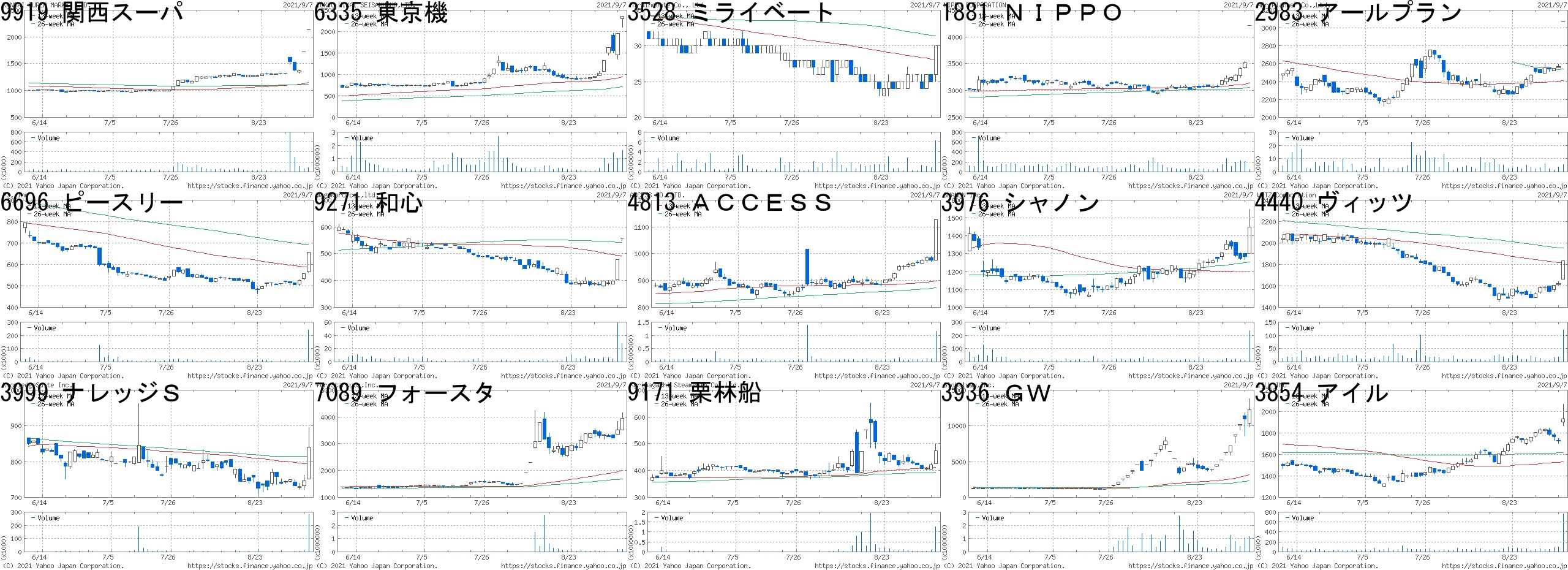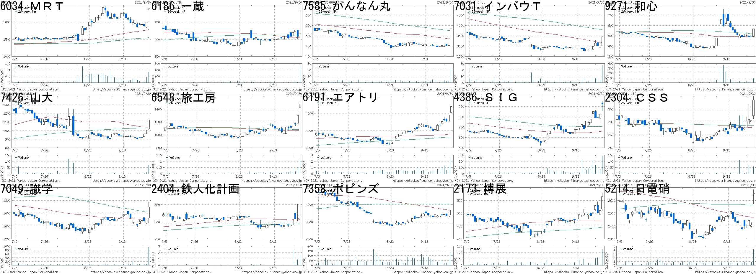 コード,銘柄名,市場,株価,前日比,前日比.1,出来高,PER,PBR,利回り7063,バードマン,東M,2250,+562,+33.29%,4635900,34.9,17.74,-2307,クロスキャト,東1,1404,+300,+27.17%,147800,28.4,2.98,1.577688,ミアヘルサ,JQ,1423,+300,+26.71%,8800,9.5,1.18,2.117072,インテM,東M,1946,+400,+25.87%,579400,757,4.68,-7126,タンゴヤ,JQ,2005,+400,+24.92%,500300,10.4,2.81,-9127,玉井船,東2,2556,+500,+24.32%,748500,6.9,1.03,-8260,井筒屋,東1,246,+38,+18.27%,2787000,14.1,0.34,-9941,太洋物産,JQ,1081,+150,+16.11%,76100,246,-,-6846,中央製,名2,1600,+220,+15.94%,500,20.6,0.56,1.253936,GW,東M,3450,+435,+14.43%,4617200,163,77.98,-3408,サカイオーベ,東1,4325,+500,+13.07%,11600,18.4,1.15,-6706,電気興,東1,2630,+297,+12.73%,269800,26.1,0.68,1.712158,フロンテオ,東M,2068,+231,+12.57%,5266400,111,16.49,0.249318,アジア開発,東2,9,+1,+12.50%,6202300,-,3.45,-4934,Pアンチエイ,東M,15060,"+1,660",+12.39%,1278600,38.0,19.05,-コード,銘柄名,市場,株価,前日比,前日比.1,出来高,PER,PBR,利回り3377,バイク王,東2,1519.0,-151.0,-9.04%,1520200,19.5,4.13,0.726279,瑞光,東2,960.0,-84.0,-8.05%,64500,16.5,0.91,1.436198,Career,東M,743.0,-65.0,-8.04%,2053100,48.6,5.16,-7036,EMネットJ,東M,7320.0,-630.0,-7.92%,22300,48.1,10.61,0.603996,サインポスト,東1,1352.0,-104.0,-7.14%,6439100,-,10.30,-1436,フィット,東M,1220.0,-88.0,-6.73%,124100,23.2,1.16,0.823491,GAテクノ,東M,1099.0,-70.0,-5.99%,3347500,-,1.98,-5401,日本製鉄,東1,2153.0,-136.5,-5.96%,37441000,5.4,0.67,-3319,GDO,東1,1469.0,-93.0,-5.95%,240000,33.8,3.83,0.655998,アドバネクス,東1,1256.0,-78.0,-5.85%,8300,51.5,0.82,0.806299,神鋼環境,東2,3360.0,-200.0,-5.62%,19700,16.4,1.64,1.799271,和心,東M,505.0,-28.0,-5.25%,15000,-,-,-9967,堺商事,東2,2311.0,-127.0,-5.21%,7300,8.1,0.51,3.033768,リスモン,東2,925.0,-50.0,-5.13%,119900,16.1,1.32,1.574333,東邦システム,東1,1026.0,-54.0,-5.00%,36200,14.8,1.65,2.92にほんブログ村