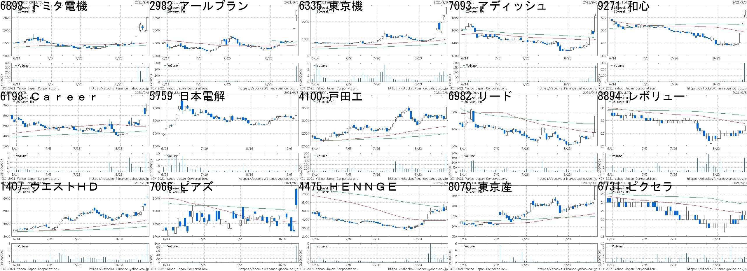 コード,銘柄名,市場,株価,前日比,前日比.1,出来高,PER,PBR,利回り6898,トミタ電機,JQ,2507,500,+24.91%,306800,17.8,0.51,-2983,アールプラン,東M,3770,700,+22.80%,242100,11.7,1.64,-6335,東京機,東1,2858,500,+21.20%,1310000,80.5,3.36,-7093,アディッシュ,東M,1827,280,+18.10%,169400,163,5.25,-9271,和心,東M,658,100,+17.92%,295900,-,-,-6198,Career,東M,715,100,+16.26%,2683600,46.8,4.96,-5759,日本電解,東M,3680,495,+15.54%,5134400,30.6,5.21,-4100,戸田工,東1,3535,460,+14.96%,473200,11.3,2.19,-6982,リード,東2,779,100,+14.73%,170800,44.5,0.78,0.648894,レボリュー,東2,28,3,+12.00%,6012400,58.3,7.14,-1407,ウエストHD,JQ,6100,650,+11.93%,2967300,41.3,11.39,0.827066,ピアズ,東M,1946,206,+11.84%,87900,63.9,2.03,-4475,HENNGE,東M,5560,560,+11.20%,1577900,467,51.23,-8070,東京産,東1,796,79,+11.02%,1281000,10.2,0.78,3.276731,ピクセラ,東2,22,2,+10.00%,2845700,-,1.85,-コード,銘柄名,市場,株価,前日比,前日比.1,出来高,PER,PBR,利回り1689,WT天然ガス,東E,2,-1,-33.33%,5970700,-,-,-3936,GW,東M,10080,-2160,-17.65%,497200,95.6,45.57,-6696,ピースリー,東M,578,-78,-11.89%,212200,713,4.13,-9629,PCA,東1,5660,-340,-5.67%,27900,31.7,2.33,0.644592,サンバイオ,東M,1243,-72,-5.48%,1064400,-,9.69,-2929,ファーマF,東1,2803,-151,-5.11%,2282900,20.3,9.62,0.714593,ヘリオス,東M,2391,-123,-4.89%,970000,-,21.72,-1881,NIPPO,東1,4010,-205,-4.86%,2664000,16.5,1.26,-2437,シンワワイズ,JQ,438,-22,-4.78%,315500,-,1.75,-7370,Enjin,東M,4405,-215,-4.65%,972100,55.2,26.35,-4168,ヤプリ,東M,3510,-170,-4.62%,71100,-,15.98,-4428,シノプス,東M,1320,-61,-4.42%,15400,138,6.28,-2158,フロンテオ,東M,1707,-75,-4.21%,1814300,92.3,13.61,0.294069,ブルーミーム,東M,2230,-98,-4.21%,30500,50.3,4.14,-4196,ネオマーケ,JQ,1921,-84,-4.19%,64300,25.0,6.19,-にほんブログ村
