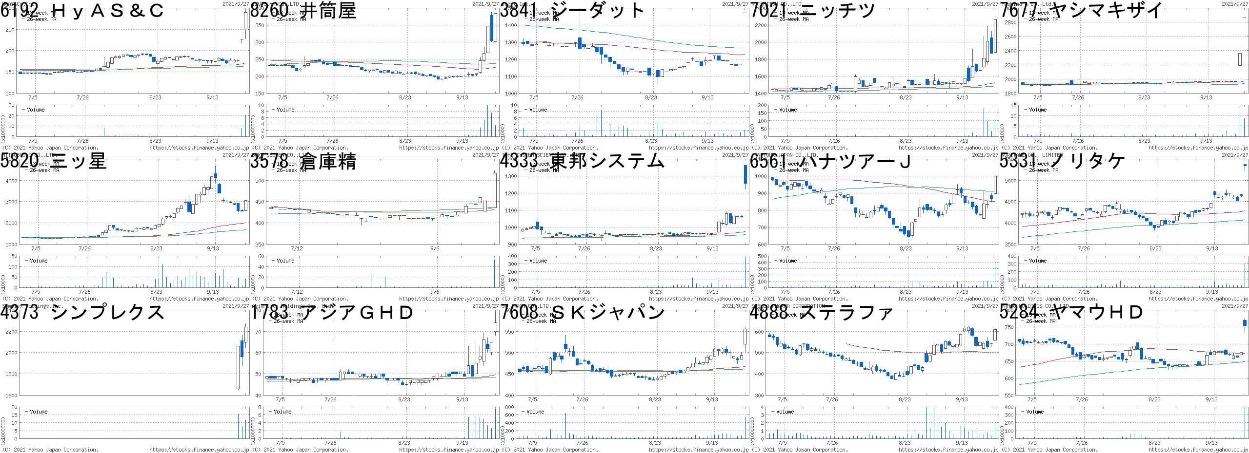 コード,銘柄名,市場,株価,前日比,前日比.1,出来高,PER,PBR,利回り6192,HyAS&C,東M,290,63,+27.75%,20159600,-,5.3,-8260,井筒屋,東1,384,80,+26.32%,3578900,22.0,0.52,-3841,ジーダット,JQ,1471,300,+25.62%,2200,25.2,0.94,1.367021,ニッチツ,東2,2270,400,+21.39%,95300,36.1,0.43,1.327677,ヤシマキザイ,東2,2860,500,+21.19%,8500,81.4,0.9,0.875820,三ッ星,JQ,3065,503,+19.63%,41800,14.0,0.59,1.633578,倉庫精,東2,517,82,+18.85%,52800,-,0.89,2.324333,東邦システム,東1,1257,195,+18.36%,376000,18.1,2.02,2.396561,ハナツアーJ,東M,1001,133,+15.32%,421800,-,17.11,-5331,ノリタケ,東1,5340,675,+14.47%,300500,9.1,0.69,2.624373,シンプレクス,東1,2240,280,+14.29%,11639600,28.8,3.32,1.031783,アジアGHD,JQ,74,9,+13.85%,7436400,435,1.25,-7608,SKジャパン,東1,555,61,+12.35%,540700,18.2,1.3,1.444888,ステラファ,東M,608,65,+11.97%,1637700,-,4.83,-5284,ヤマウHD,JQ,754,79,+11.70%,383700,5.3,0.67,2.92コード,銘柄名,市場,株価,前日比,前日比.1,出来高,PER,PBR,利回り9941,太洋物産,JQ,1190,-350,-22.73%,194400,271,-,-3408,サカイオーベ,東1,4380,-1000,-18.59%,38700,18.6,1.16,-3936,GW,東M,2425,-500,-17.09%,49300,115,54.85,-4372,ユミルリンク,東M,1368,-212,-13.42%,1835200,24.0,4.37,-6664,オプトエレ,JQ,650,-100,-13.33%,1425400,5.6,0.73,-4179,ジーネクスト,東M,930,-137,-12.84%,329100,46.2,5.13,-6205,OKK,東1,288,-40,-12.20%,2538900,-,0.23,-7072,インテM,東M,2143,-287,-11.81%,962900,833,5.16,-4889,レナ,東M,740,-86,-10.41%,2598300,-,11.82,-2925,ピックルス,東1,2053,-212,-9.36%,298500,13.9,1.72,0.857089,フォースタ,東M,4540,-455,-9.11%,129600,50.2,13.60,-6533,オーケストラ,東1,4235,-415,-8.92%,262200,59.1,10.71,0.199519,レノバ,東1,4860,-460,-8.65%,2388500,74.5,18.56,-2667,イメージワン,JQ,880,-80,-8.33%,1354300,179,2.99,-3996,サインポスト,東1,1236,-106,-7.90%,1479100,-,9.41,-にほんブログ村