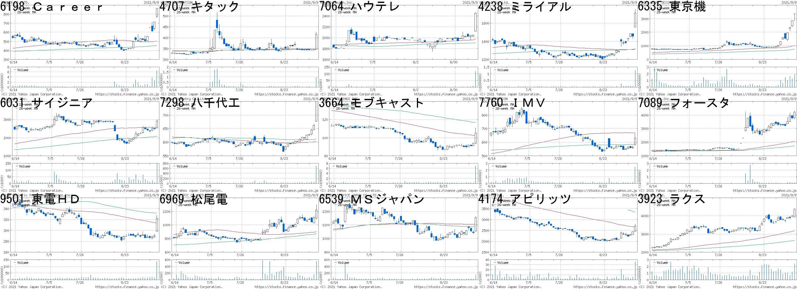 コード,銘柄名,市場,株価,前日比,前日比.1,出来高,PER,PBR,利回り6198,Career,東M,865,150,+20.98%,6552100,56.6,6.01,-4707,キタック,JQ,416,71,+20.58%,953100,12.3,0.86,1.207064,ハウテレ,東M,2450,400,+19.51%,117700,1580,10.84,-4238,ミライアル,東1,1715,257,+17.63%,1247700,-,0.8,-6335,東京機,東1,3360,502,+17.56%,1876800,94.6,3.94,-6031,サイジニア,東M,2915,426,+17.12%,149500,-,34.5,-7298,八千代工,JQ,750,88,+13.29%,684800,12.8,0.34,1.603664,モブキャスト,東M,105,11,+11.70%,7062400,-,4.27,-7760,IMV,JQ,630,65,+11.50%,2441600,15.8,1.4,1.597089,フォースタ,東M,4220,425,+11.20%,158400,46.7,12.64,-9501,東電HD,東1,322,32,+11.03%,136220700,7.7,0.16,-6969,松尾電,東2,1221,120,+10.90%,540300,16.5,1.81,-6539,MSジャパン,東1,1153,109,+10.44%,145000,29.2,3.23,1.304174,アピリッツ,JQ,2700,255,+10.43%,35700,19.6,1.94,-3923,ラクス,東1,4390,405,+10.16%,2393500,-,101.0,0.04コード,銘柄名,市場,株価,前日比,前日比.1,出来高,PER,PBR,利回り3936,GW,東M,7910,-2170,-21.53%,613300,75.0,35.76,-3071,ストリーム,東2,142,-37,-20.67%,3323000,7.8,1.53,-3161,アゼアス,東2,773,-117,-13.15%,595700,16.5,0.72,2.599318,アジア開発,東2,8,-1,-11.11%,5916900,-,3.07,-3528,ミライベート,東2,27,-3,-10.00%,8931900,39.7,0.71,-3810,サイステップ,東2,652,-72,-9.94%,186700,-,1.43,-4020,ビートレンド,東M,3110,-330,-9.59%,10600,33.2,5.25,-4169,エネチェンジ,東M,2671,-271,-9.21%,799800,-,36.41,-9271,和心,東M,600,-58,-8.81%,367700,-,-,-7162,アストマクス,JQ,288,-27,-8.57%,861100,-,0.68,-6697,テクポイント,東M,1620,-123,-7.06%,138300,-,-,-6982,リード,東2,725,-54,-6.93%,137800,41.5,0.72,0.693788,GMO-GS,東1,5140,-380,-6.88%,427800,76.4,8.48,0.653121,マーチャント,東2,355,-25,-6.58%,417500,42.8,2.71,0.569242,メディア総研,東M,3315,-225,-6.36%,179600,30.1,6.34,-にほんブログ村