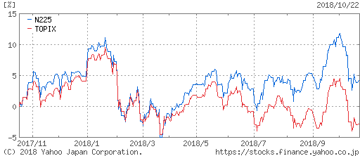 ちなみにこの1年の日経平均とTOPIXは以下。