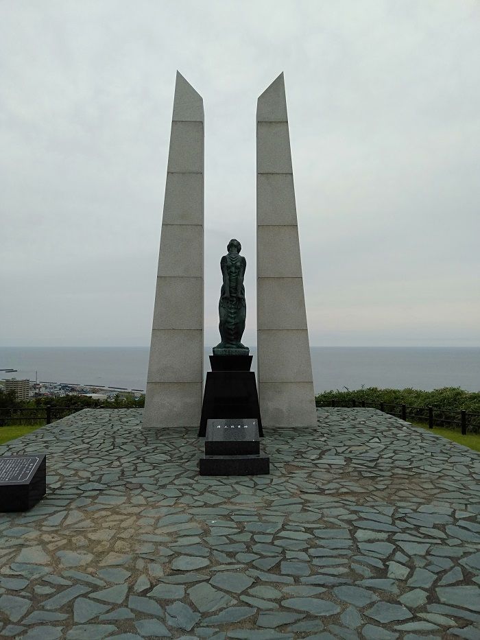 ↓氷雪の門、第二次世界大戦終了間際の樺太へのソビエト侵攻で電話交換手として最後まで業務遂行して自決した9人の女性への慰霊碑
