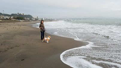 カーテンの隙間から漏れる光で・・・あっ、晴れてる。/ 窓を開けると、潮風がすーっと入り込み、白い波頭が見えます。 水平線の上に房総半島が見えて、雲間が微かに曙色に染まっています。 AM5時50分 わんこの散歩に出ました。 普段の散歩の時間より30分程遅いスタートでした。 いつもは寝ているB型男の耳を舐めて、散歩に誘うまるもですが、 今朝は寝過ごしたようです。 初めて大海原を間近で見たまるもです。 砂に足を取られ歩きにくかったことと、海水は塩辛いことは理解したようです。 タクトが初めて海を見たときは、 波打ち際を猛ダッシュして、最後に飛び込みましたからね。 爽やかで、波が寄せる度に心が浄化されていくようです。 パワースポットですかね。 30分程、散歩をしていると、地元のわんこ達も朝の散歩に出かけてきました。 「あの子たちは朝と夕に、この浜辺を散歩してるんだぁ~。 きっと最高の日の出や夕焼けを見ているのでしょうね。」 地元のわんこ達がうらやましいワン、ワンワン。 「さて、そろそろ朝食の時間だよ。お宿に戻りますかぁ~」 AM7時30分 朝食の時間です。ウキウキしながらレストランに向かいます。 昨日と同じ席とカゴです。 では、いただきます 朝食が美味しいって、いいことですよね。 AM9時00分 あいぽんを連れてもう一度散歩に出ました。 こんな情景を以前にも見ましたね・・・ パパさん、赤沢海岸だワン。あのときは暑かったワン(思い出写真) そうだったね、タクちゃん。 波が荒れていて、君が飛び込みはしないかと、ちょっとヒヤヒヤしていたよ。 6年前だったね・・・いい旅だったよね。 でっかい水たまりだワン・・・ おっ、それ以上近寄るなワン 天気快晴です。いい記念になりました。 ねっ、タクちゃん まるも、一度海に飛び込んでみろワン(思い出写真) AM9時50分 チェックアウトです。 さぁ、ゴジラに逢いに行くよ。 つづく
