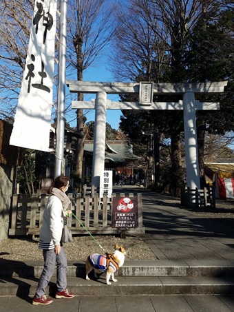 氏神様に到着です。 まぁちゃん は、入れないんだ。