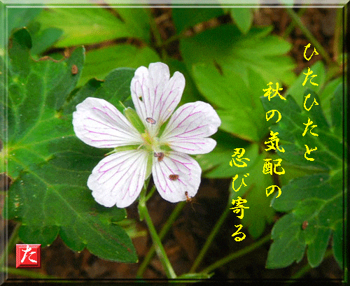 今日の川柳“ ひたひたと秋の気配の忍び寄る ”8月も今日で終わりですね。北国の夏はもうおしまい?昨日の札幌の最高気温は21,8度ですって!日中でも寒くてカーデガンを羽織ってしまいました。過ごしやすくなったのは嬉しいけど、「もう、夏も終わり」と思うと寂しくて勝手なもんだと思います。さ~、9月からは正常な活動に戻ります。また忙しい日々が始まります。フウロソウ にほんブログ村いつも応援ありがとうございます。今日もポチッとよろしくお願いします。
