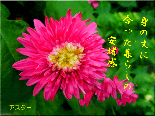 今日の川柳“ 身の丈に合った暮らしの安堵感 ”まだまだ暑いけれど朝の空気はもう秋のもの!爽やかな澄んだ空気がなんとも言えず心地よい♪さ~、今日も元気で楽しい日になりますように。アスター今日は友人に依頼されて漢字仲間の友人と「漢字と遊ぼう」という企画に参加してきます。結構忙しい日日です! にほんブログ村いつも応援ありがとうございます。今日もポチッとよろしくお願いします。