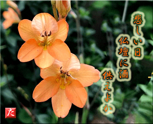 今日の川柳“ 悲しい日仏壇に酒そなえよか ”夫が亡くなって11月が来ると丸10年。嬉しいときも悲しいときも仏壇に手を合わせ報告する。時には探し物をお願いすることもある、不思議と出てくるのです。何にもないときは「ありがとう」と感謝の言葉を・・・。秋の花今日も外出の予定があります♪親しいお仲間さんに会って楽しんできます。 にほんブログ村いつも応援ありがとうございます。今日もポチッとよろしくお願いします。