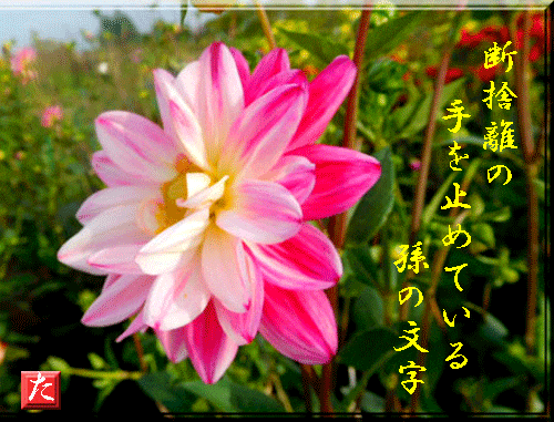 今日の川柳断捨離の手を止めている孫の文字高齢になって困っているのは溜まりにたまった不要なもの。独り暮らしには多すぎる古い食器、きっともう着ることは無いだろうと思う洋服や和服の類、古くなった書類・書籍など。でもどうしても捨てられないのは、孫が小さいころにくれた手紙など。さてどうしたものか?悩むところである。ダリアの花(ちょっと加工してみました)今日もダブルで午前(ホイスコーレ)午後(N川柳会)と予定が入っている。体調はもうバッチリ、とは言っても高齢の身無理はできないけどこなしていこう! にほんブログ村いつも応援ありがとうございます。今日もポチッとよろしくお願いします。